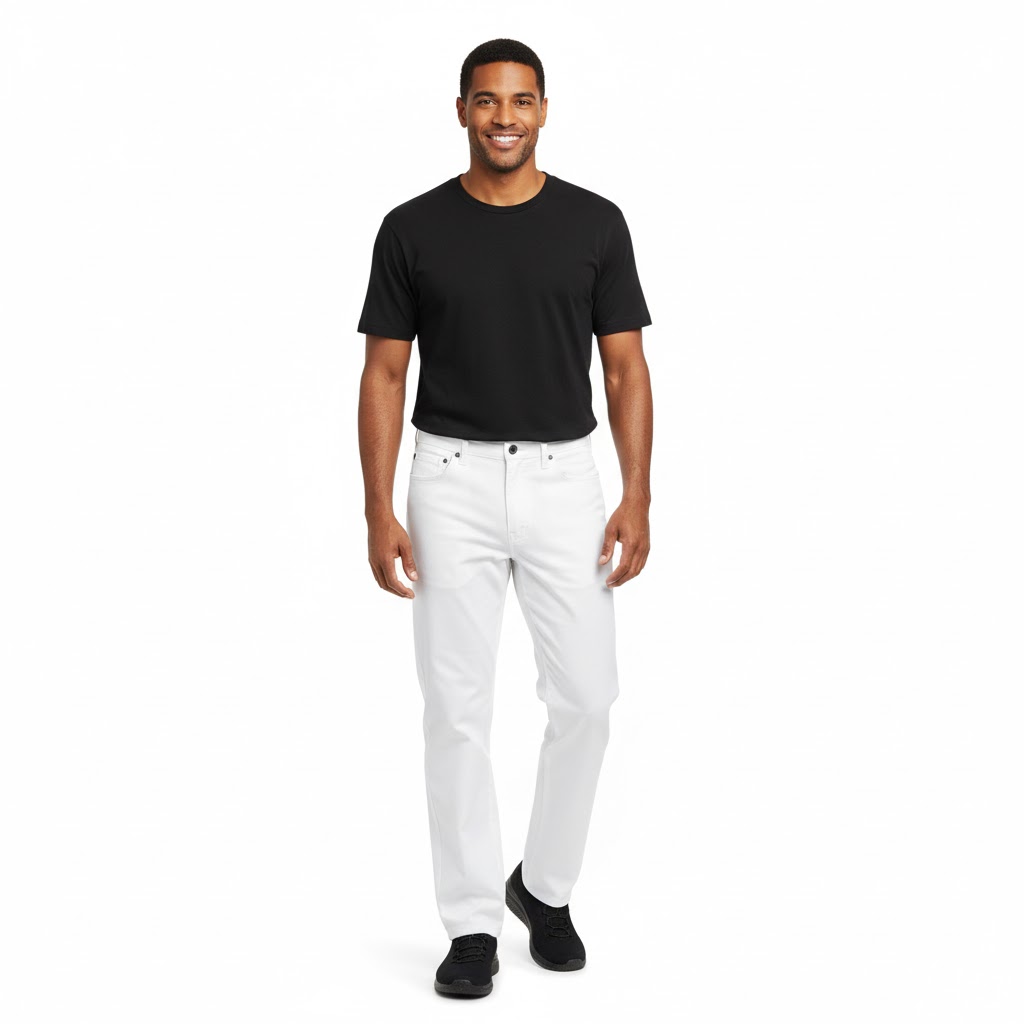 Nybo Workwear A/S præsenterer Nybo Hvide Herre Harmonyjeans, en stilfuld buksemodel designet med en ungdommelig og elegant pasform. Disse herrebukser er ikke alene komfortable takket være deres stretch-materiale, men de passer også mænd i alle aldre perfekt. Den hvide farve er ideel for dem, der søger et skarpt og rent look, mens den unikke evne til ikke at være gennemsigtig tilføjer en praktisk fordel. Modellen findes også i en længere version med 10 cm ekstra længde.