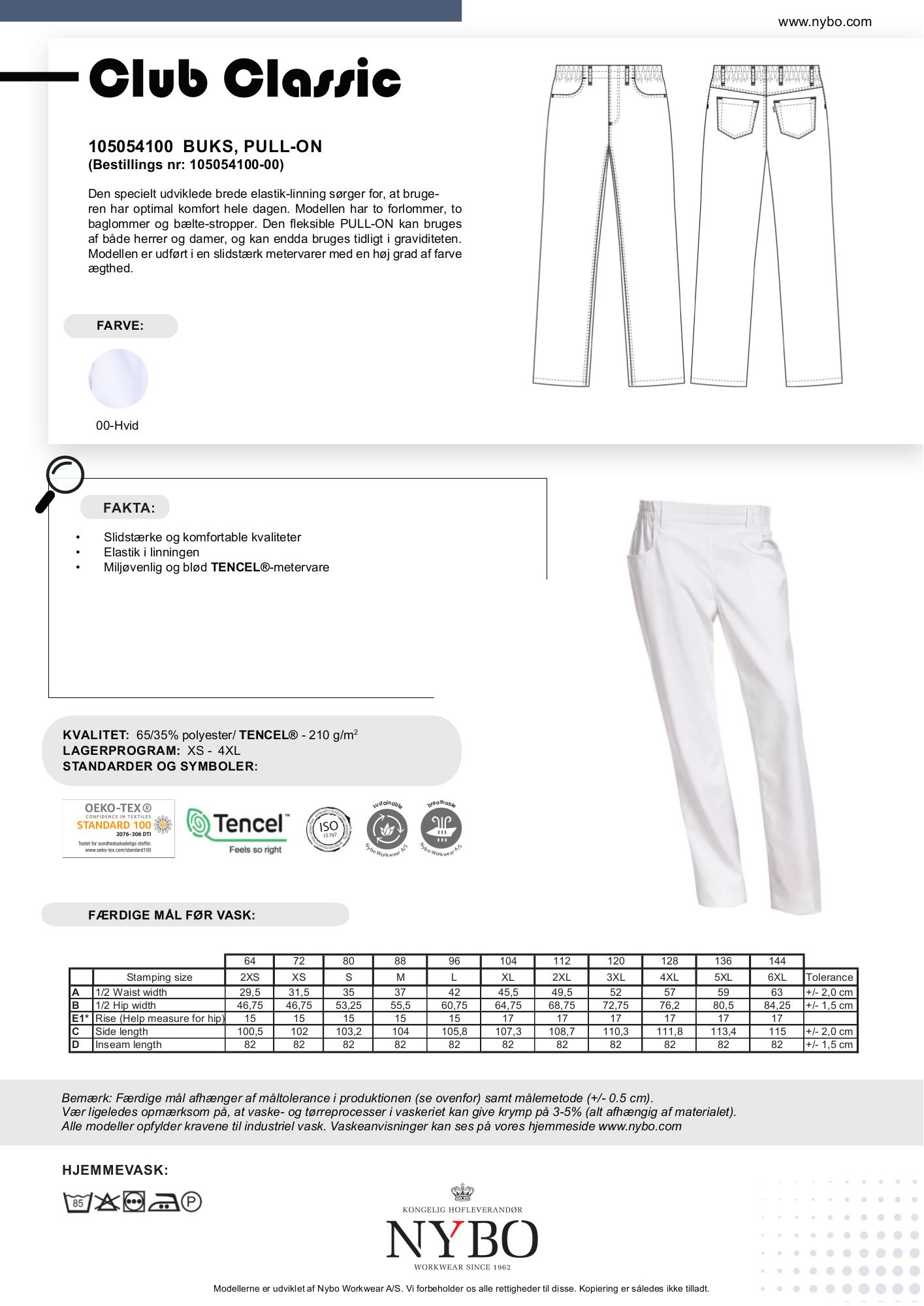 Oplev komfort og stil med Nybo Hvide Unisex Club-Classic Bukser fra Nybo Workwear A/S. Disse pull-on bukser sikrer en fantastisk pasform takket være den specialdesignede brede elastik-linning, der garanterer optimal komfort hele dagen. Med sine to forlommer, to baglommer og bælte-stropper, kombinerer modellen funktionalitet med et stilrent look. Den slidstærke metervare sikrer høj farveægthed, og bukserne er perfekte til både herrer og damer, hvilket gør dem ideelle også tidligt i graviditeten.
