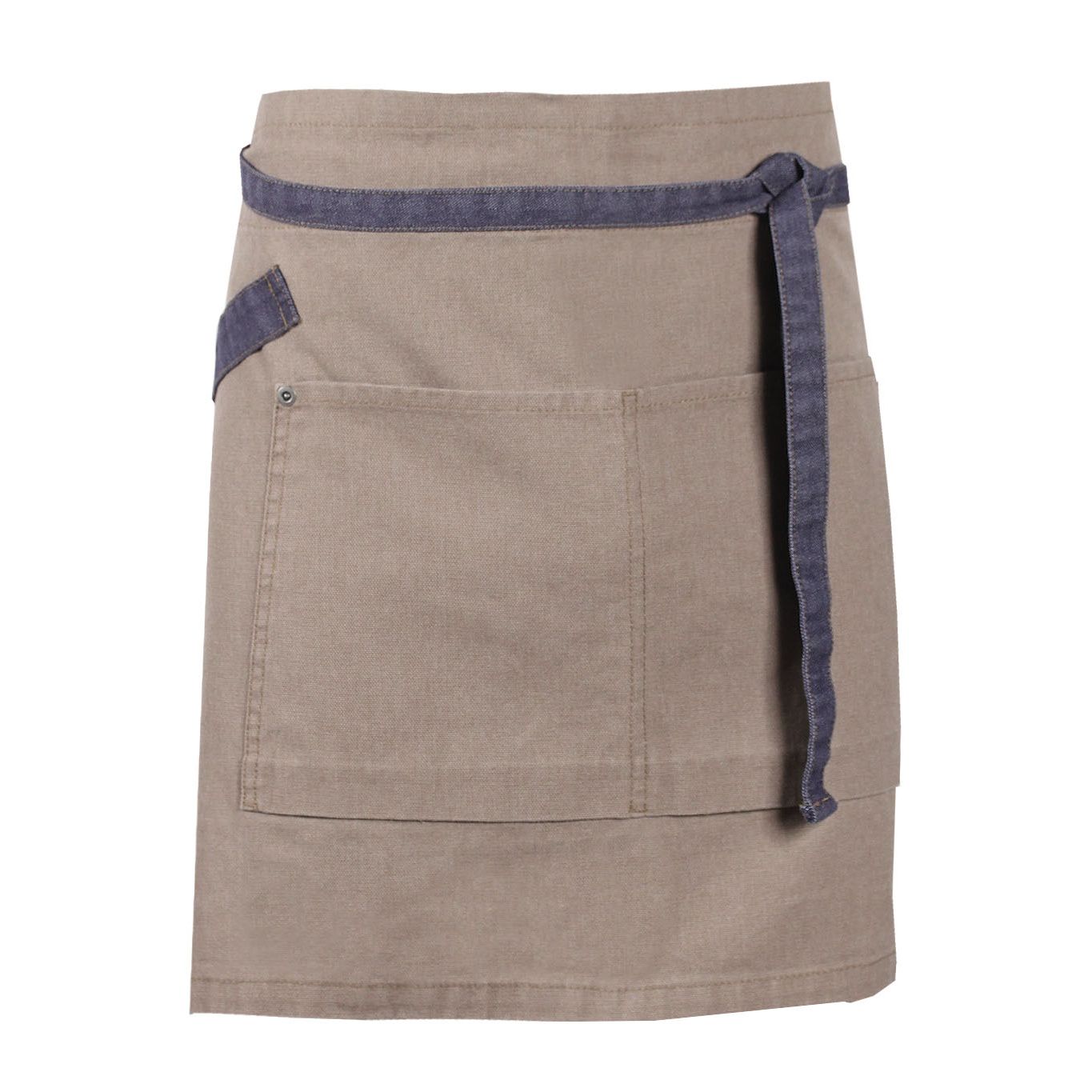 Forstykket er fremstillet af en traditionel kraftig lærredsvævning, der er meget holdbar og bliver blødere og flottere for hver vask. Lange bindebånd ved hoften gør, at det passer perfekt til alle kropsformer, og det er tilgængeligt i flere farvekombinationer, herunder brun/brun, brun/denimblå, khaki/khaki, sort/denimblå og sort/sort.
