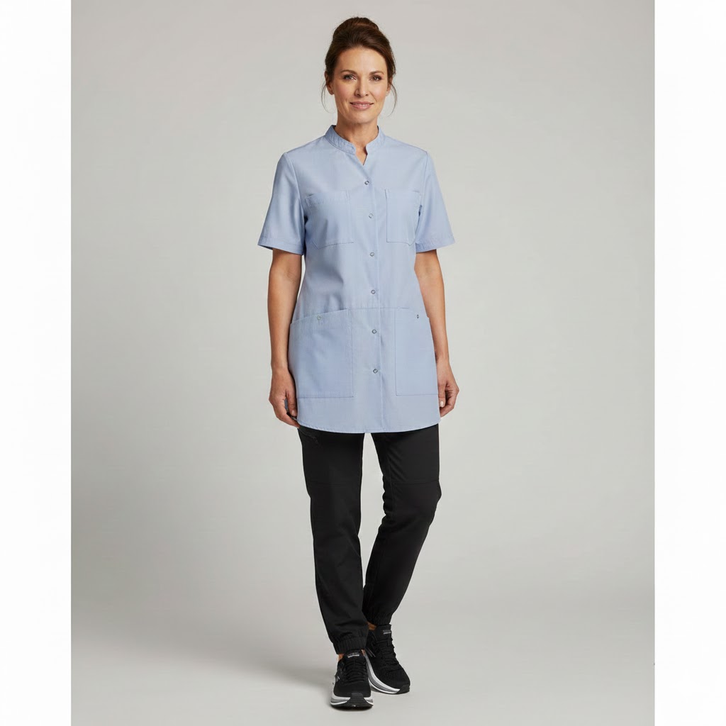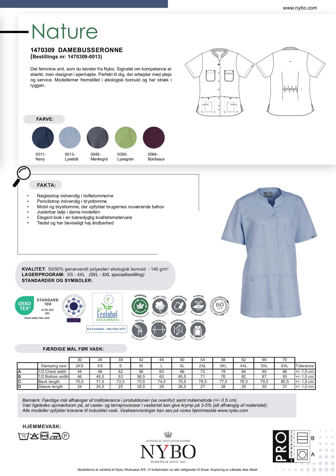 Denne damebusseronne fra Nybo Workwear A/S er designet med tanke på både komfort og professionalisme. Det feminine snit gør den perfekt til dig, som arbejder inden for pleje og service. Fremstillet af økologisk bomuld og med stræk i ryggen, giver denne busseronne dig både bevægelsesfrihed og stil. Dens enkle, men elegante design gør den ideel at kombinere med jeans. Den lyseblå farve er ikke blot attraktiv, men også et signal om kompetence og venlighed.