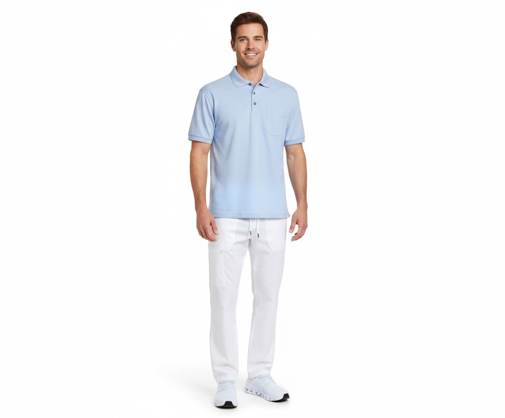 Nybo Lyseblå Herre Basic Poloshirt, Kortærmet, Slidstærk, Ribdetaljer, Brystlomme