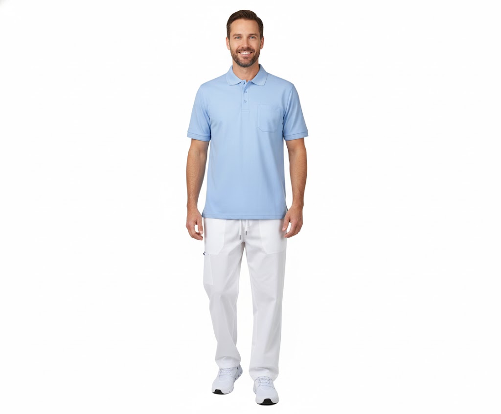 Denne poloshirt er tilgængelig i flere farver for at matche forskellige uniformskrav eller personlige præferencer. Udover lyseblå kan du vælge mellem hvid, navy, blå melange, kongeblå, azur, koksgrå, grå melange, grøn, lime, rød, bordeaux, lilla, gul, orange, sort, og sølvgrå. Stoffet består af 50% polyester og 50% bomuld med en vægt på 210-220 g/m², hvilket gør den både let og slidstærk.