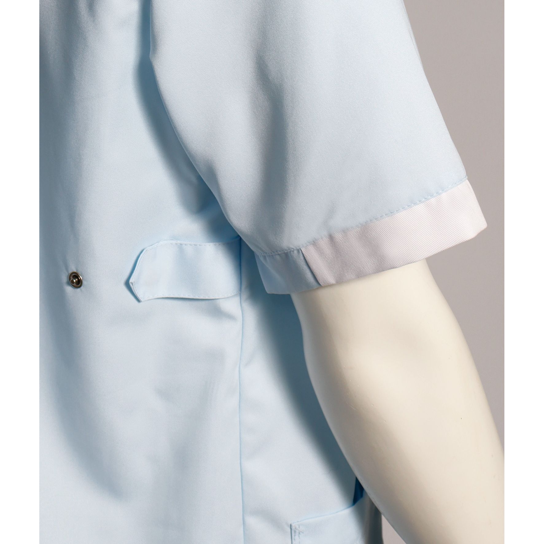 Denne alsidige unisex-busseronne fra Nybo Workwear A/S er skabt til at give dig både stil og komfort. Den lyseblå, hvide og lysegrønne Nova Premium model dækker dine hofter flot og har lange slidser på siderne for at sikre optimal bevægelsesfrihed. Den er udstyret med en praktisk brystlomme med en strop til pen eller ID-kort samt to dybe hoftelommer med nøglestropper. En ekstra smart funktion er den diskrete mobil-lomme inde i højre hoftelomme. De justerbare stropper på ryggen sikrer en individuel pasform og en behagelig unisex-silhuet.