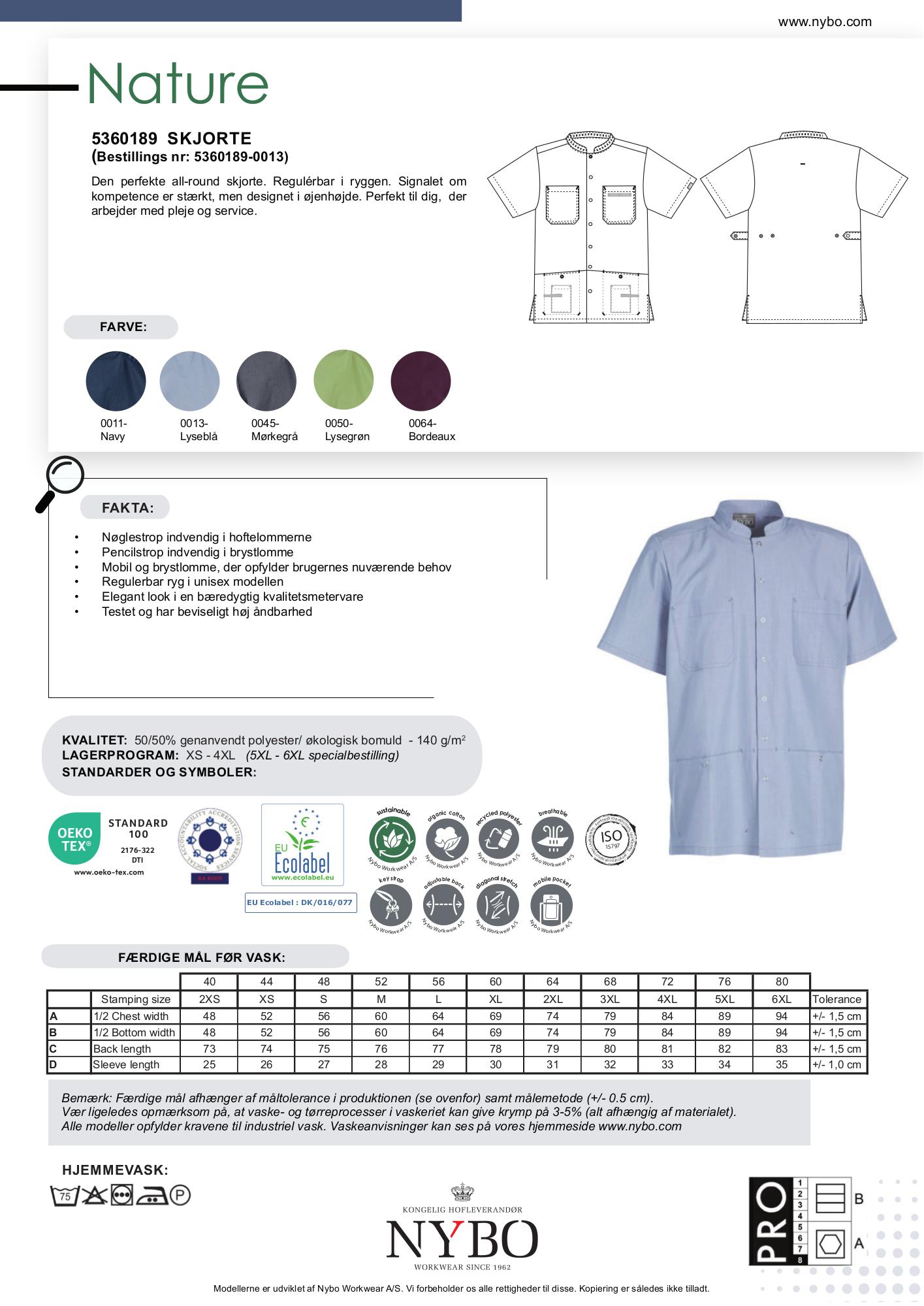 Nybo Lyseblå Unisex Nature Skjorte, Regulérbar, Slidstærk
