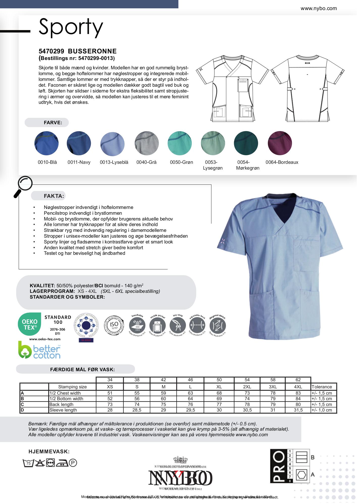 Nybo Lyseblå Unisex Sporty Busseronne er designet til både mænd og kvinder og tilbyder en perfekt blanding af stil og funktionalitet. Denne unisex-busseronne har en stilfuld rundet spri-hals og er udstyret med en rummelig brystlomme samt praktiske hoftelommer, der inkluderer nøglestropper og integrerede mobillommer, alle med trykknapper, så dine ejendele altid er sikre. Med sin lige facon dækker busseronnen godt ned over hofterne, selv ved buk og løft, og den har slidser i siderne for ekstra fleksibilitet. De justerbare stropper på ærmer og overvidde giver mulighed for at tilpasse modellen til et mere feminint udtryk, hvis ønsket opstår.