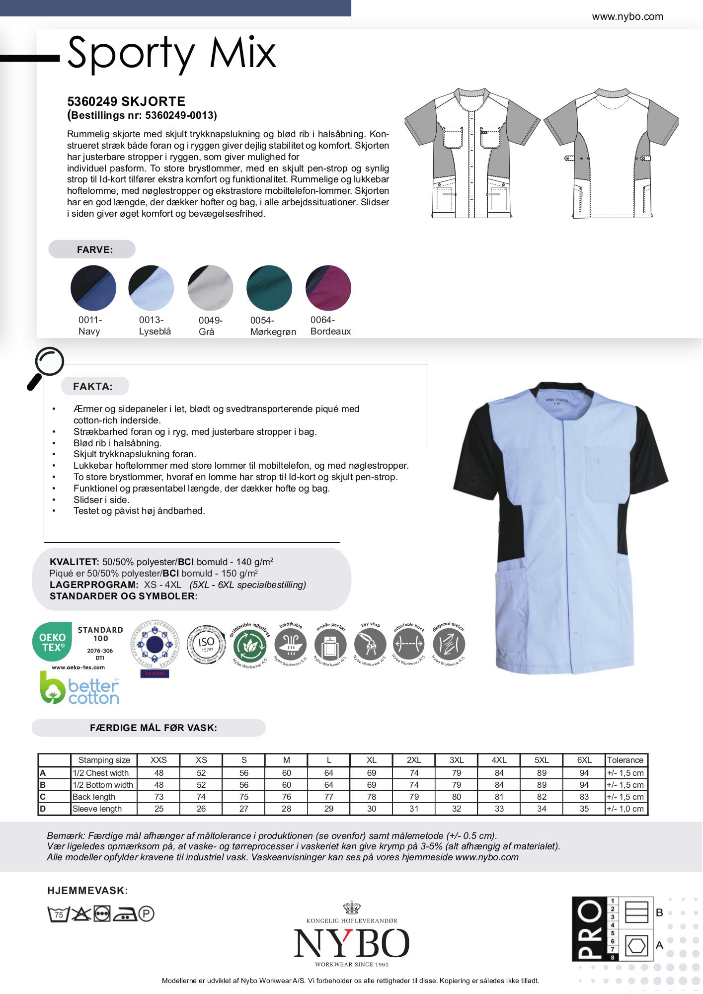 Tilgængelige størrelser: XS, S, M, L, XL, 2XL, 3XL, 4XL. Merpris 15% for overstørrelser 2XL og op.