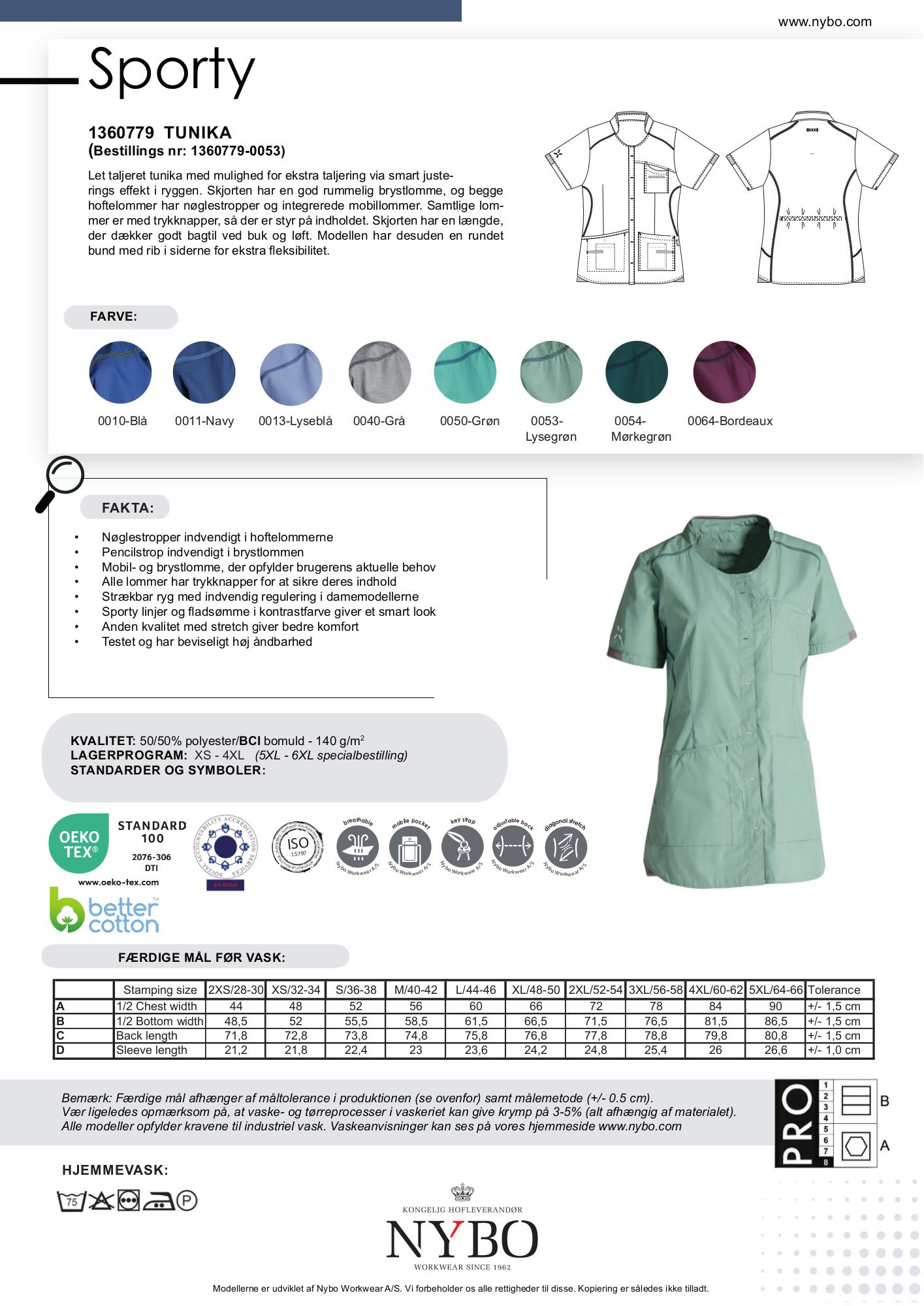 Tilgængelige størrelser: XS/34, S/38, M/42, L/46, XL/50, 2XL/54, 3XL/58, 4XL/62. Der er en merpris på 15% for størrelser 2XL og op.