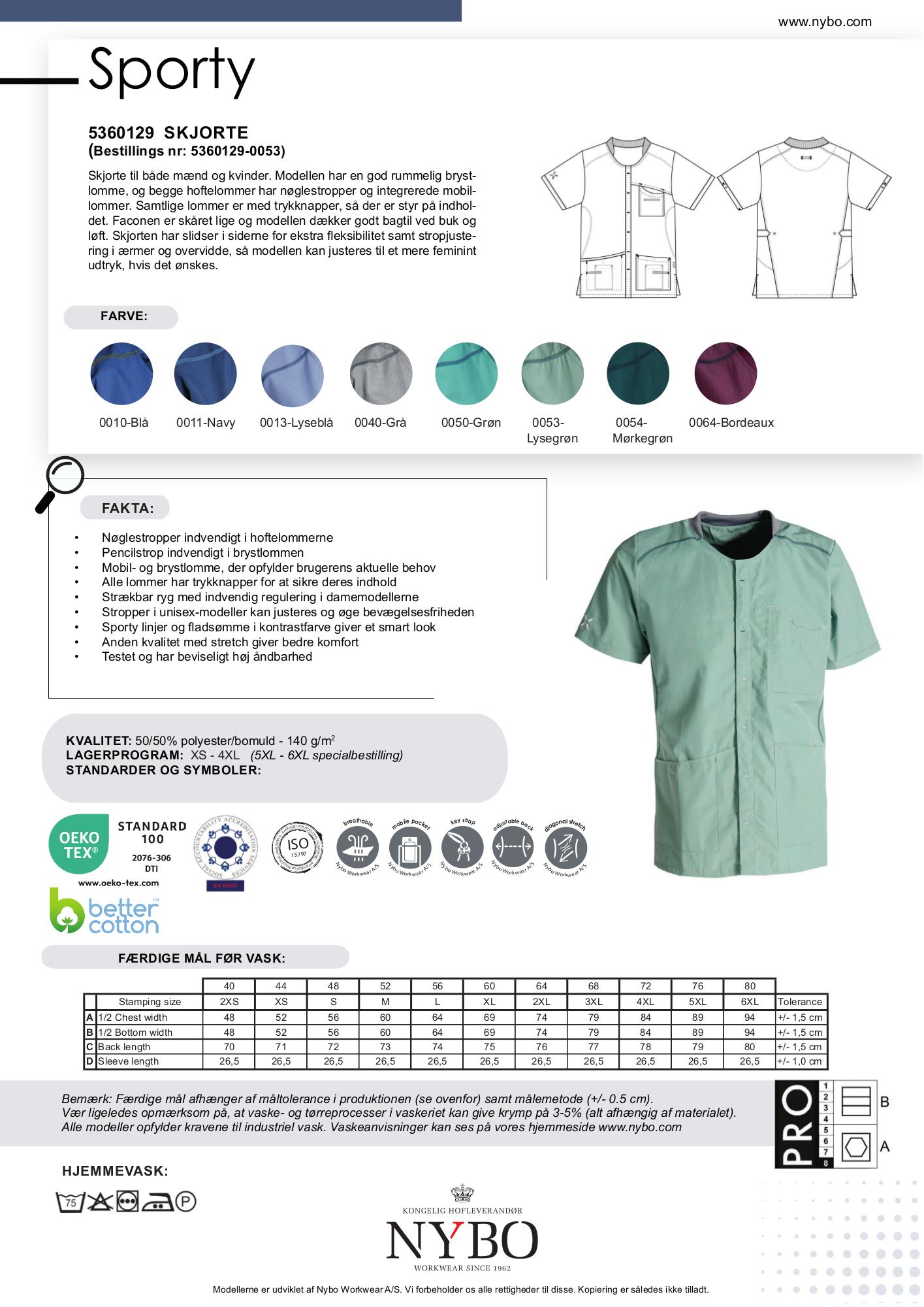 Tilgængelige størrelser: XS, S, M, L, XL, 2XL, 3XL, 4XL (merpris 15% for overstørrelser 2XL og op).