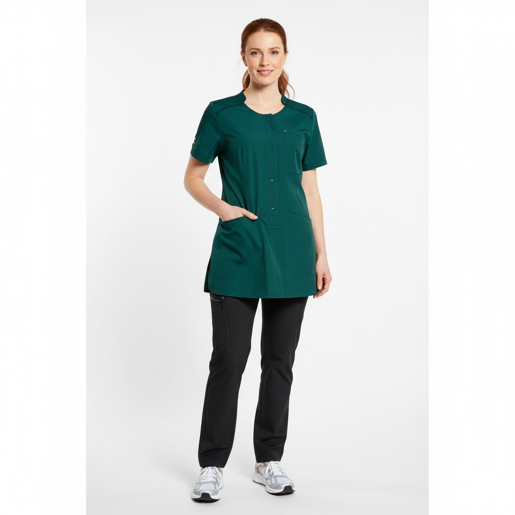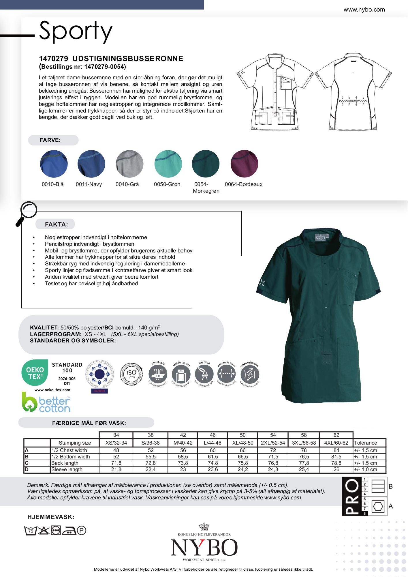 Nybo Workwear A/S præsenterer en elegant og funktionel damebusseronne, som er en del af deres populære kollektion inspireret af tidens løbetøj. Denne let taljerede busseronne i mørkegrøn er designet med en stor åbning foran, der gør det nemt at tage den af uden kontakt med ansigtet, hvilket minimerer spredning af eventuelle urenheder. Med mulighed for ekstra taljering via en smart justeringsfunktion i ryggen, kan du nemt tilpasse modellen til din krop.