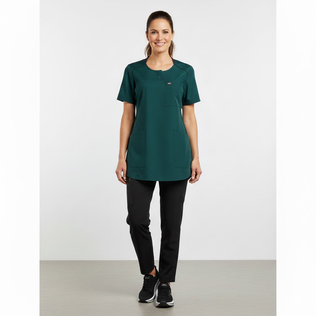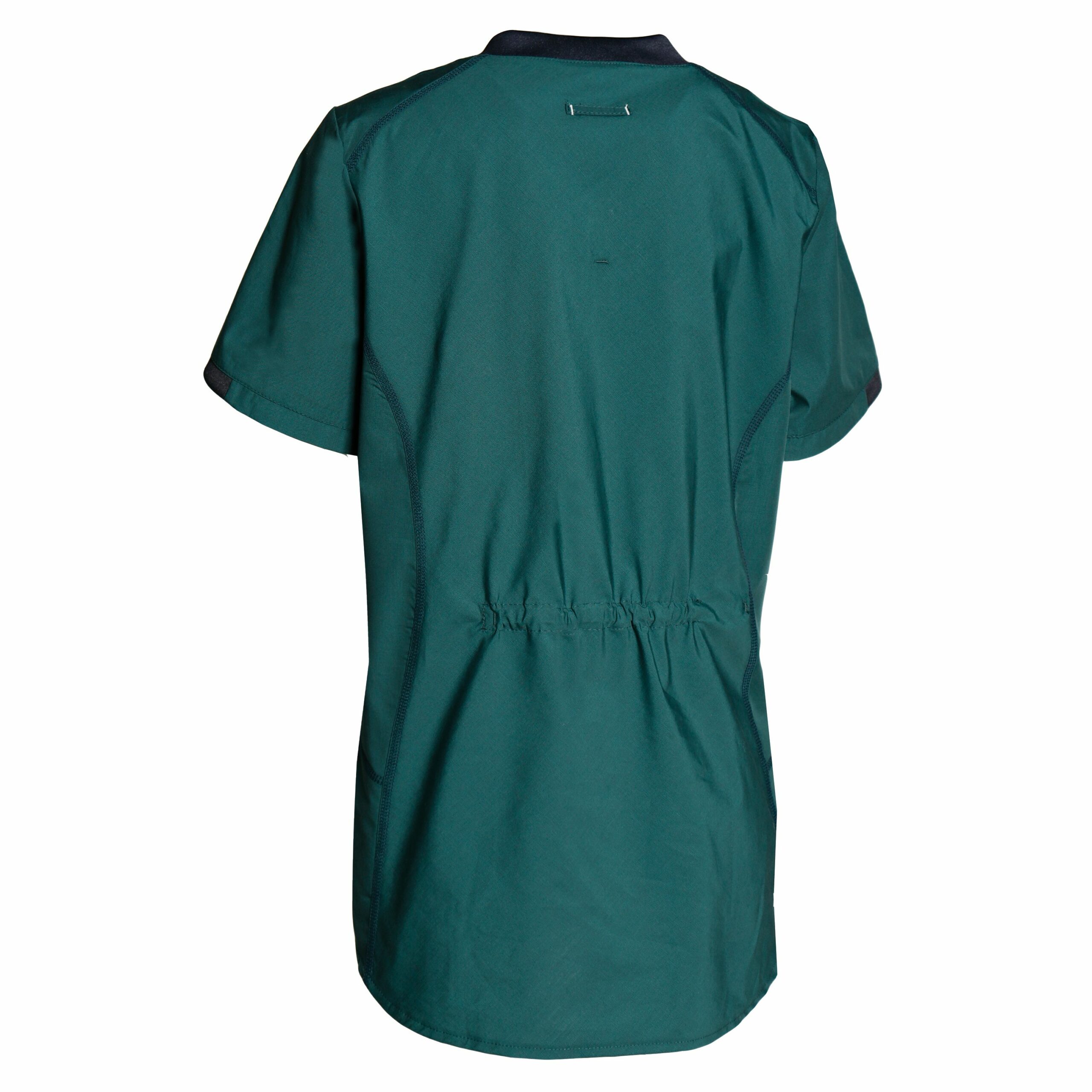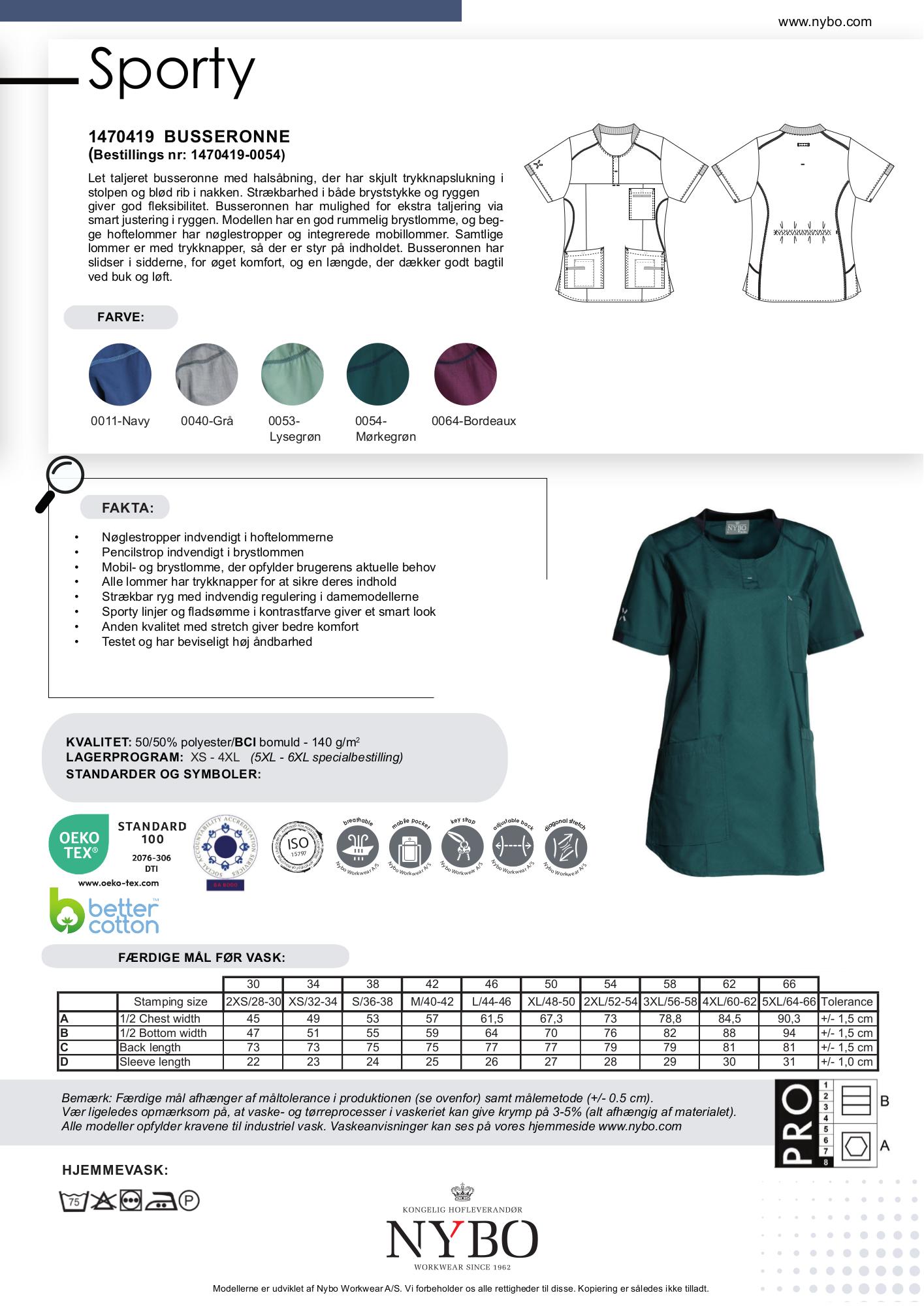 Den stilfulde og komfortable damebusseronne fra Nybo Workwear A/S er skræddersyet til den moderne kvinde, der ønsker både æstetik og funktionalitet. Med en let taljeret pasform og en diskret trykknapslukning ved halsåbningen, samt en blød rib i nakken, tilbyder denne busseronne ikke kun et slankt look men også exceptionel komfort. Den er designet til maksimal fleksibilitet med strækbare paneler i både bryststykke og ryg og har mulighed for ekstra taljering via en smart justering i ryggen, for en personlig pasform.