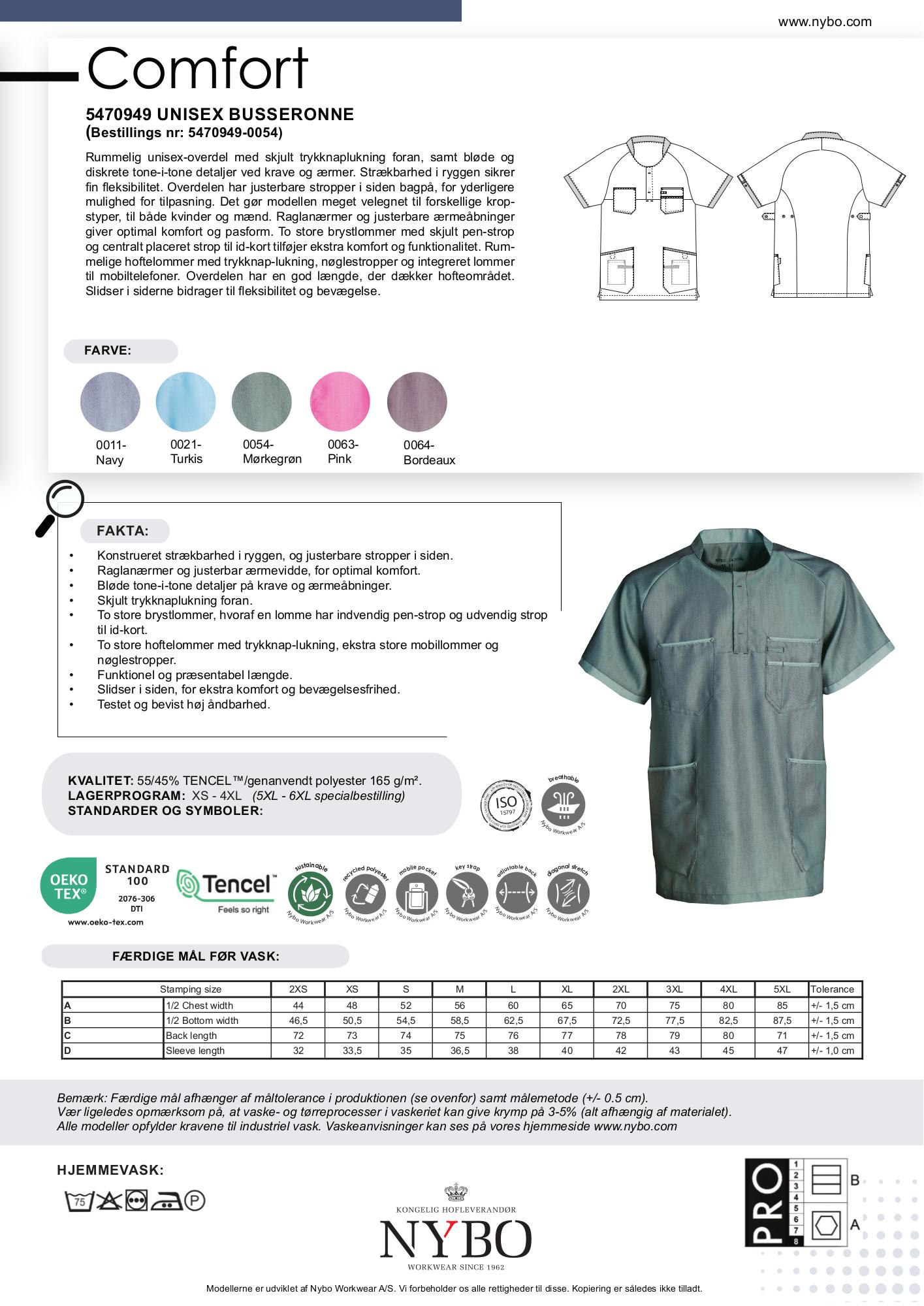 Kollektionen COMFORT, som denne busseronne er en del af, er specielt udviklet til pleje- og servicepersonale, der har brug for tøj, der kombinerer komfort med et professionelt udseende. Raglanærmerne skaber en flatterende silhuet, og materialevalget af TENCEL™ og genanvendt polyester sikrer høj åndbarhed og komfort. Serien prioriterer grønne initiativer og miljøvenlige produktionsmetoder, som sikrer høj kvalitet og minimal miljøbelastning.