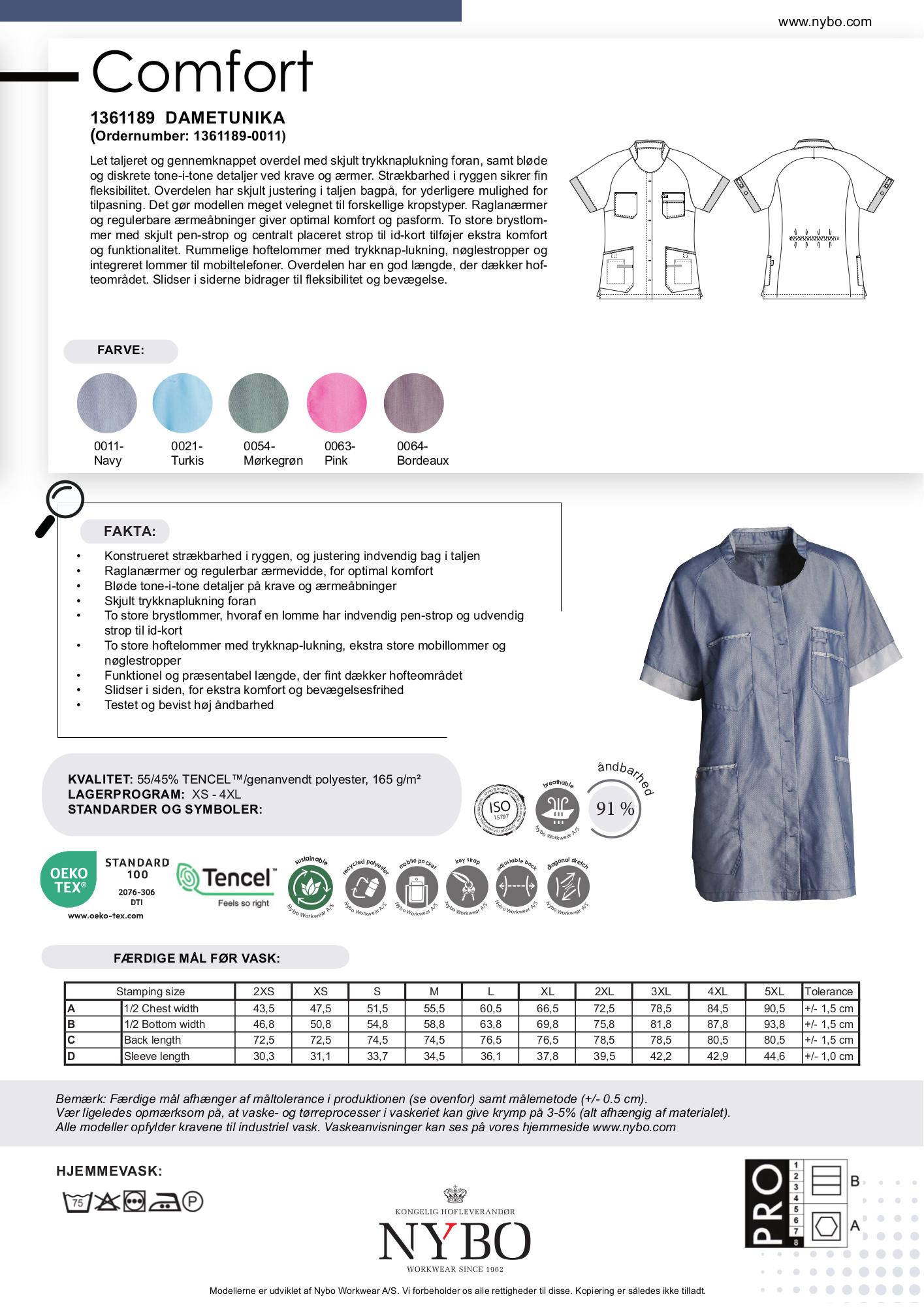 Comfort-serien tilbyder en samling af betryggende og stilfulde overdele designet specielt til plejepersonale og servicearbejdere, der har brug for både komfort og funktionalitet i deres arbejdsdag. Med brug af superbløde materialer som TENCEL™ og genanvendt polyester sikres en høj grad af åndbarhed og holdbarhed, der modstår både slitage og svedlugt. Serien er desuden fremstillet med miljøvenlige processer, hvilket understøtter grønne initiativer.