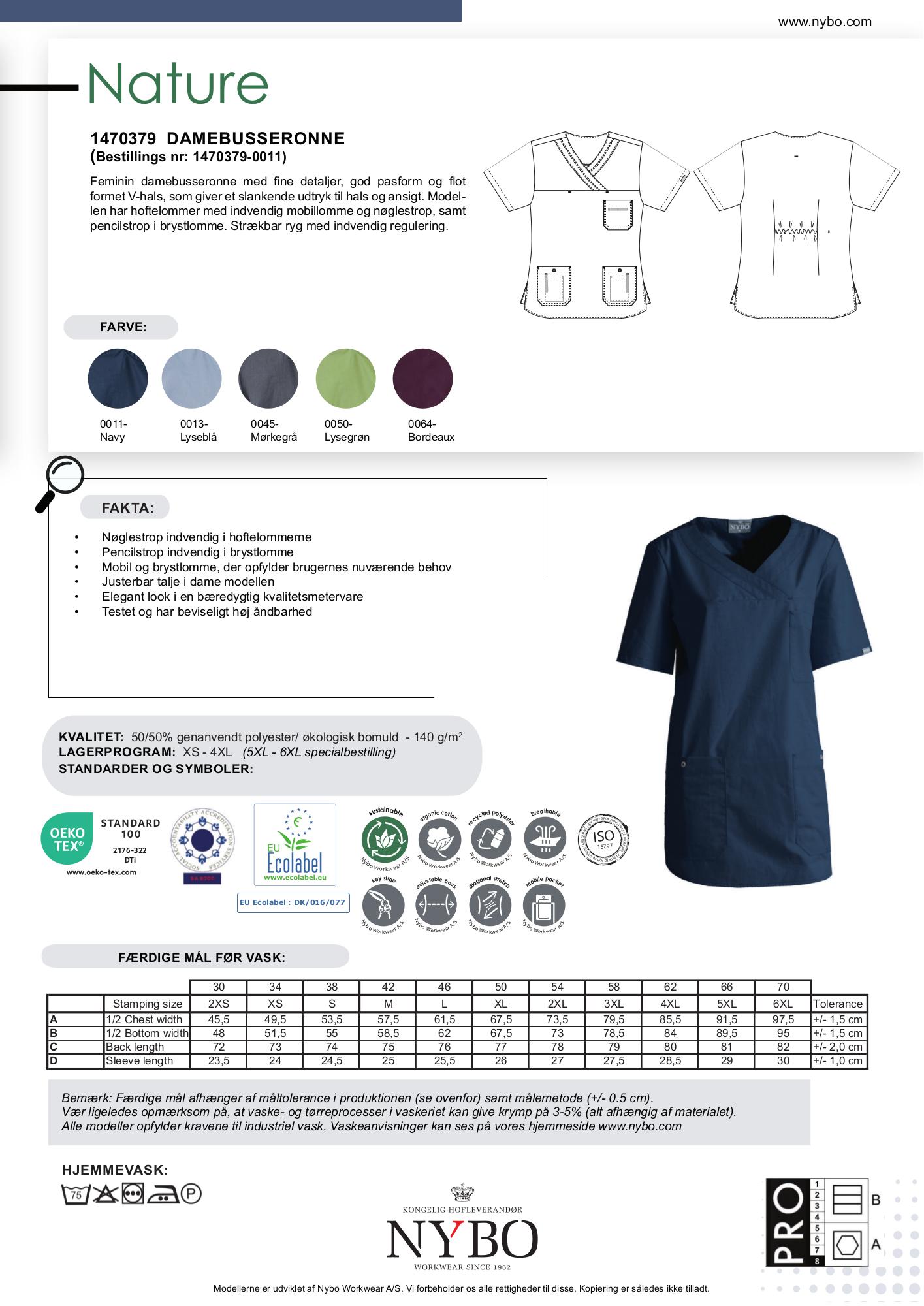 Den feminine damebusseronne fra Nybo Workwear A/S byder på elegante detaljer og en enestående pasform, der fremhæves af en stilfuld V-hals, som skaber et slankende udtryk til både hals og ansigt. Med praktiske hoftelommer, inklusiv en mobillomme og nøglestrop, samt en pencilstrop i brystlommen, er denne busseronne både funktionel og moderne. Den strækbare ryg med indvendig regulering sikrer maksimal komfort og fleksibilitet.