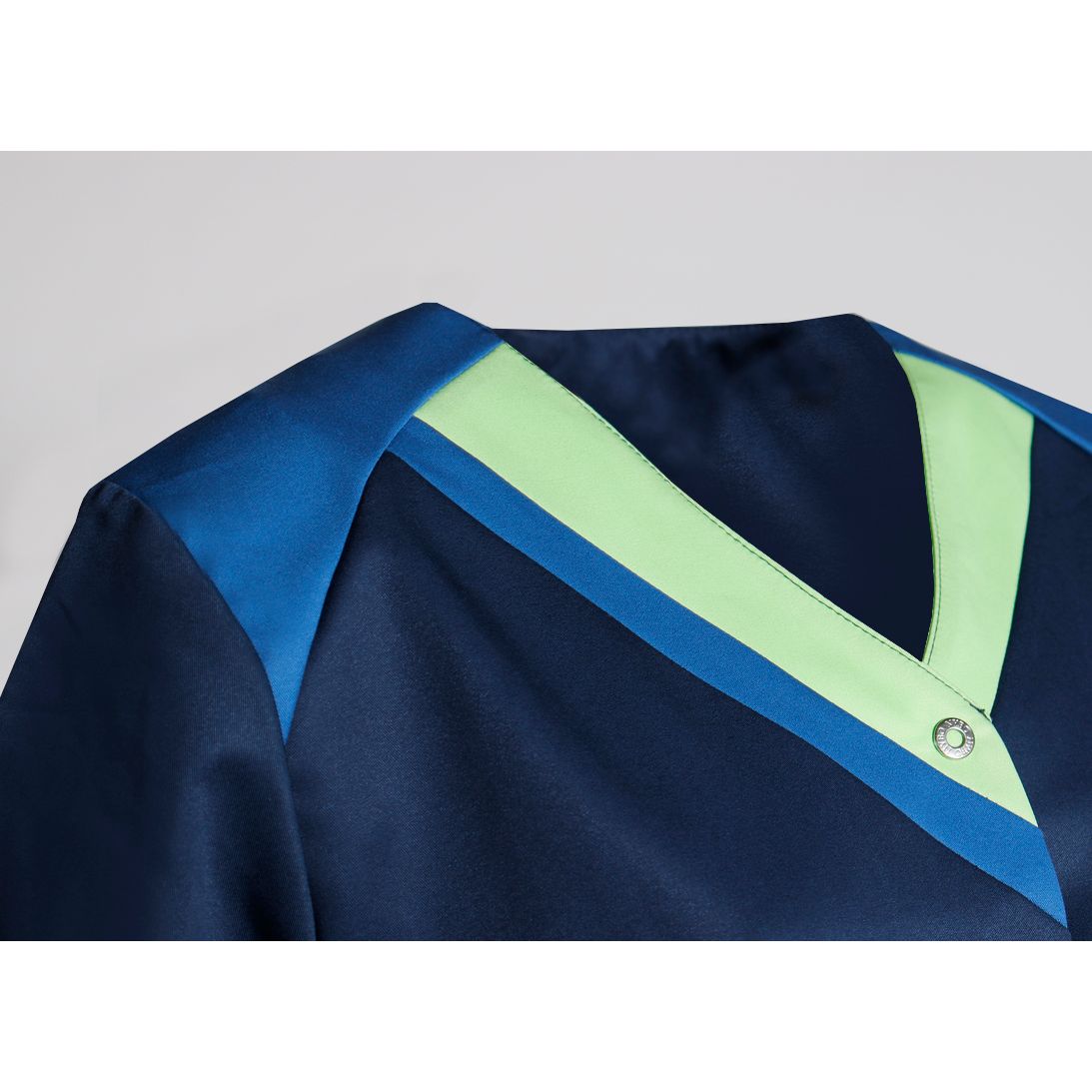 Nybo Navy Lysegrøn Blå Dametunika, Nova Premium, Taljeret, Slidser, V-hals