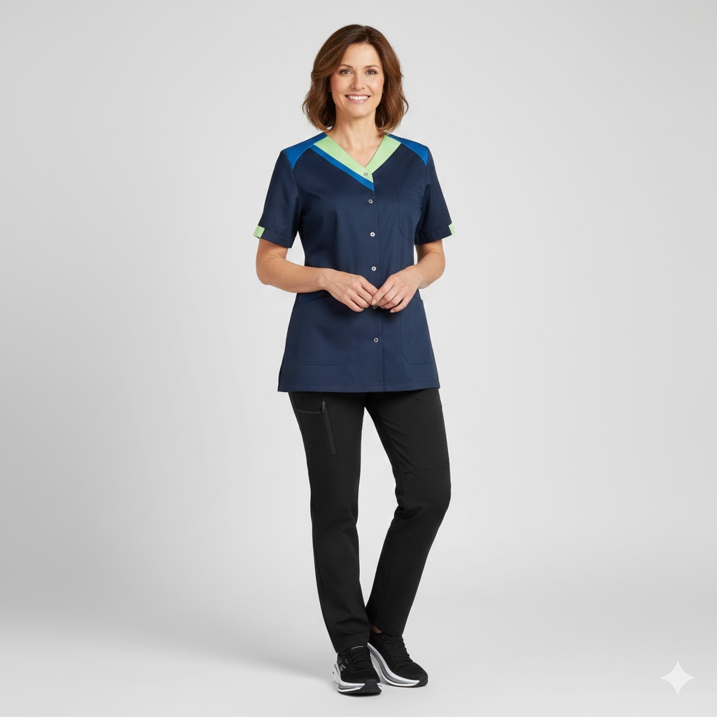 Nova Premium-kollektionen byder på et opmuntrende og beroligende look med sofistikerede detaljer og farver, der matcher de nyeste modetrends. Denne kollektion er fremstillet i TENCEL®, som er kendt for sin holdbarhed og komfort, samt permanente resistens mod bakterier og dårlig lugt. Et bæredygtigt valg, der også sikrer minimal miljøbelastning. Glade farver og en god pasform sikrer høj komfort og tilfredse brugere, hvilket gør tøjet ideelt til sundheds- og plejesektoren samt servicesektoren.