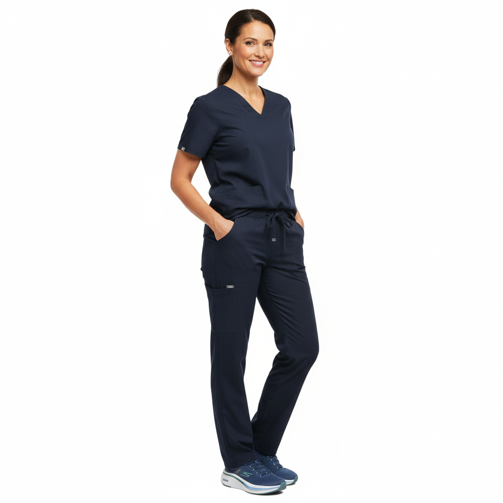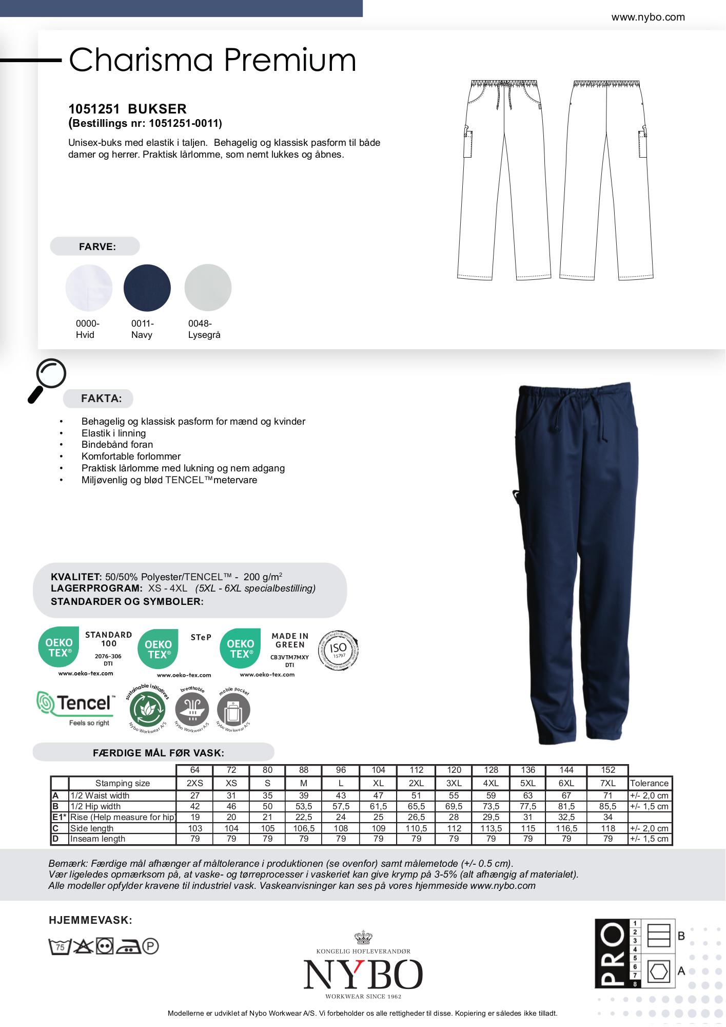 Bukserne fås i navy, men er også tilgængelige i hvid og pale grey, hvilket gør det nemt at vælge den farve, der passer bedst til arbejdsuniformen.