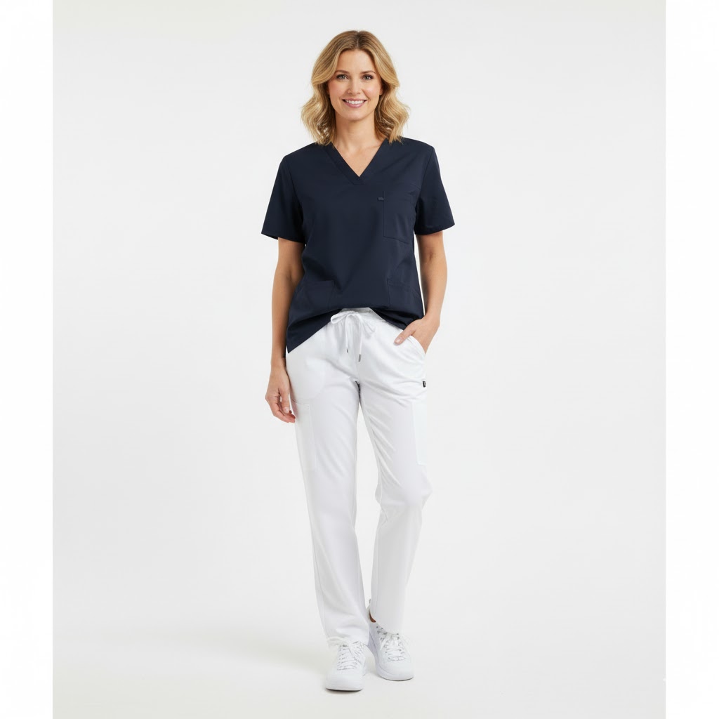 Frame-kollektionen består af en række praktiske og enkle overdele skabt til sundhedssektoren. Designet er rent og professionelt for at imødekomme kravene i et travlt arbejdsmiljø. Modellerne i kollektionen er designet med fokus på optimal pasform og komfort, takket være det flatterende snit og de materialer med høj åndbarhed og styrke. Frame-kollektionen fås i klassiske og populære farver som hvid og navy, der nemt kan kombineres med vores bukser og nederdele i forskellige farver og kvaliteter.