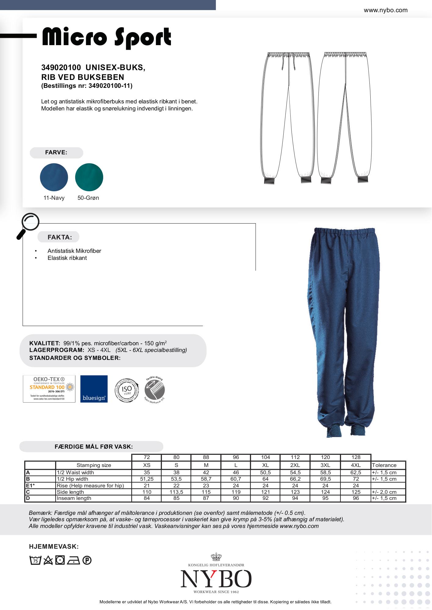 Nybo Workwear A/S præsenterer mærkets unisex bukser i en elegant navy farve, der kombinerer komfort og funktionalitet. Disse lette og behagelige antistatiske mikrofiberbukser er designet med en elastisk ribkant ved buksebenene, hvilket gør dem ideelle til både arbejde og fritid. Derudover fremhæver elastikken og den indvendige snøre i linningen buksernes alsidighed, mens de samtidig sikrer en perfekt pasform uanset aktivitet. For dem der foretrækker alternativer, kan disse bukser også fås i en stilfuld grøn farve.