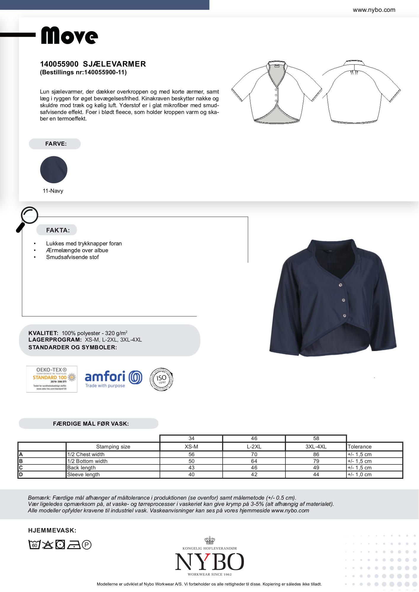 Tilgængelige størrelser: XS, L, 3XL. Bemærk, at der er en merpris på 15 % for størrelser 2XL og op.