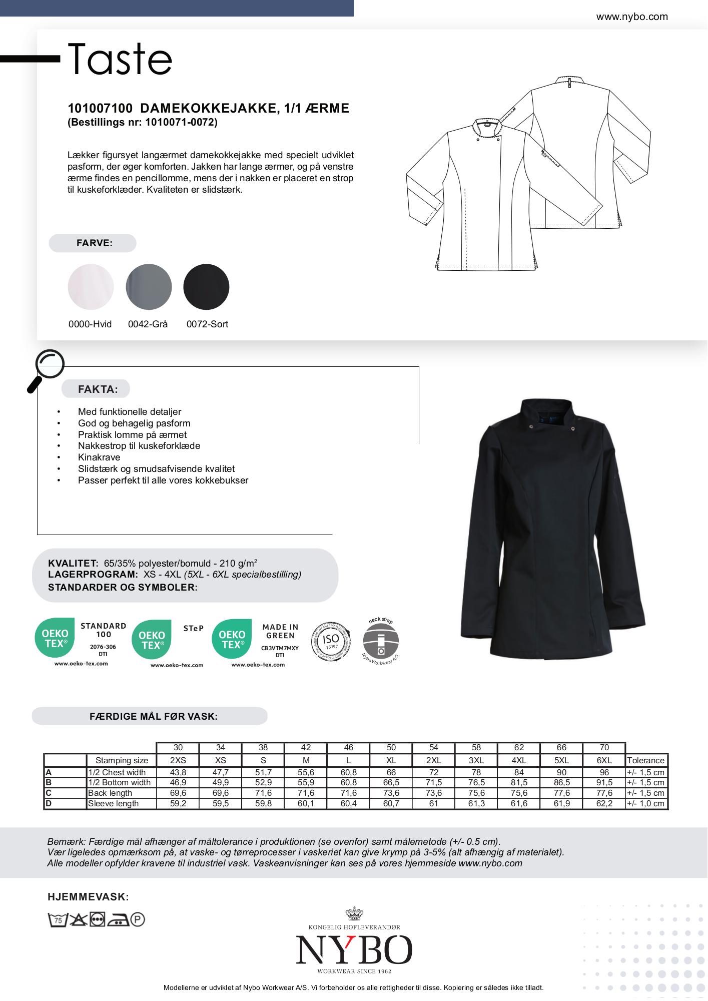 Nybo Sort Dame Taste Kokkejakke, Langærmet, Slidstærk, Komfort