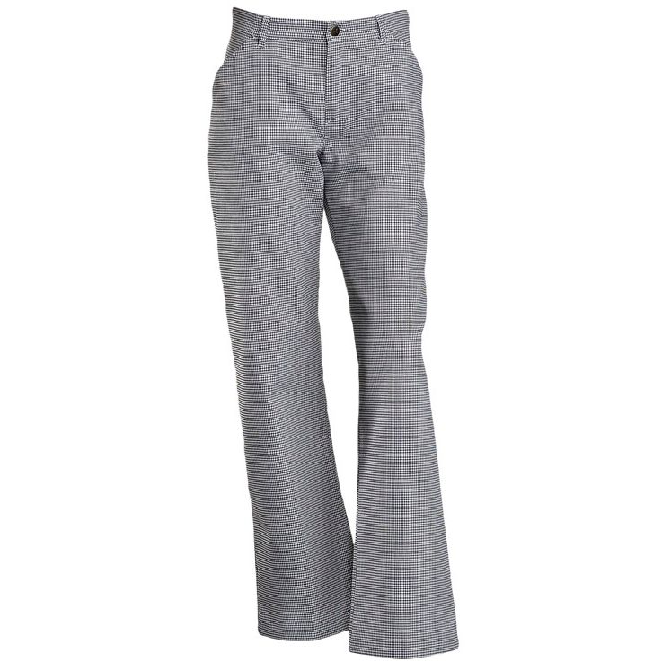 Nybo Workwear A/S præsenterer damekokkebukser i et elegant sort-hvid pepita-mønster, der kombinerer stil og funktionalitet. Disse slidstærke bukser har en regulerbar elastik i linningen, som sikrer optimal komfort og en længere levetid. Bukserne er udstyret med skrålommer og to praktiske baglommer, hvilket gør dem ideelle til daglig brug i et professionelt køkken.