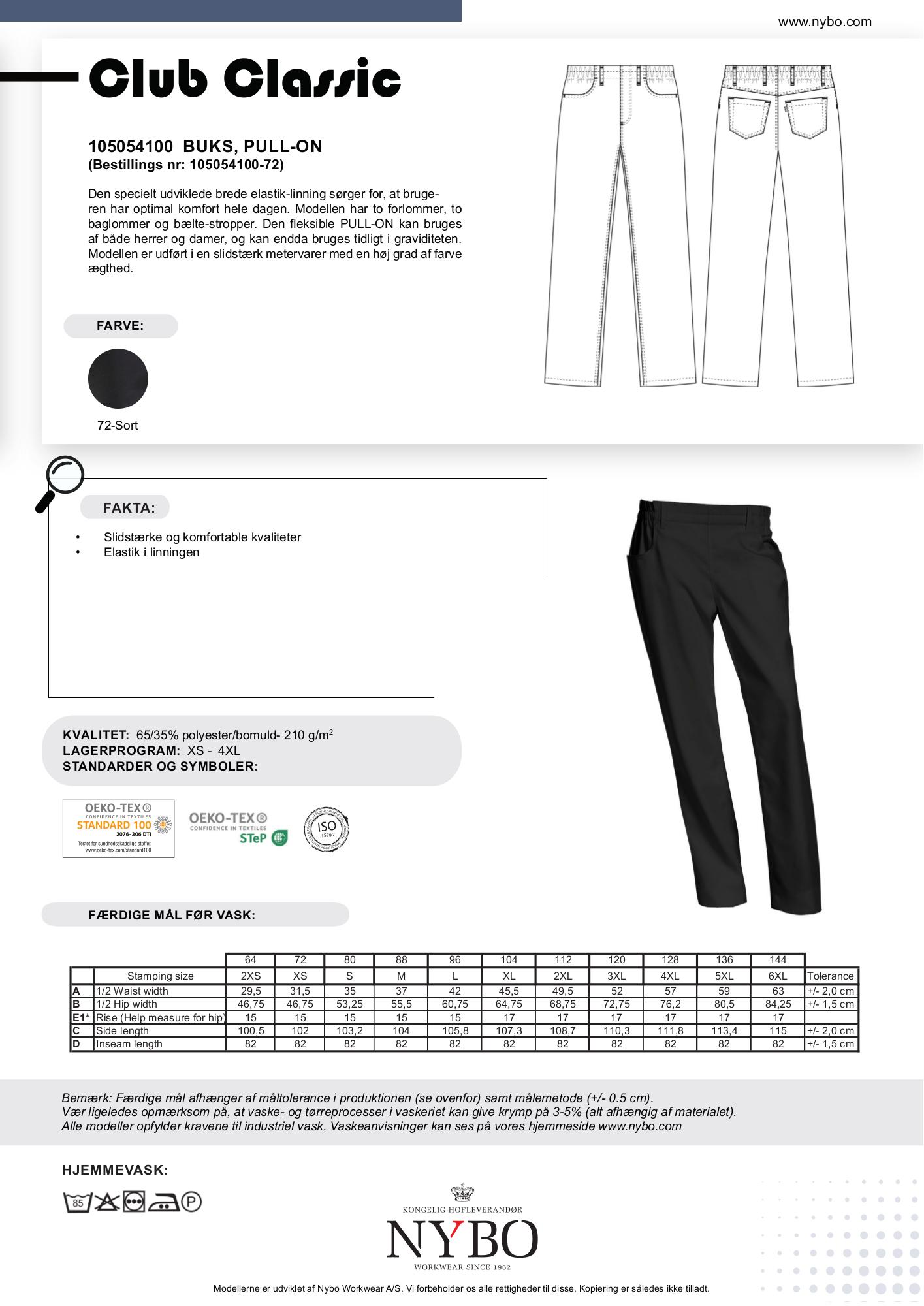 Oplev ultimativ komfort med Nybos Unisex Club-Classic bukser, designet med en bred elastik-linning, der sikrer optimal komfort dagen igennem. Disse stilfulde pull-on bukser byder på to praktiske forlommer, to baglommer og bælte-stropper, hvilket gør dem både funktionelle og elegante. Den fleksible pasform gør dem perfekte til både mænd og kvinder, og de kan endda bruges tidligt i graviditeten. Bukserne er fremstillet i en holdbar polyester/bomuldsblanding, der ikke kun er slidstærk men også har en høj grad af farveægthed, så farven holder vask efter vask.