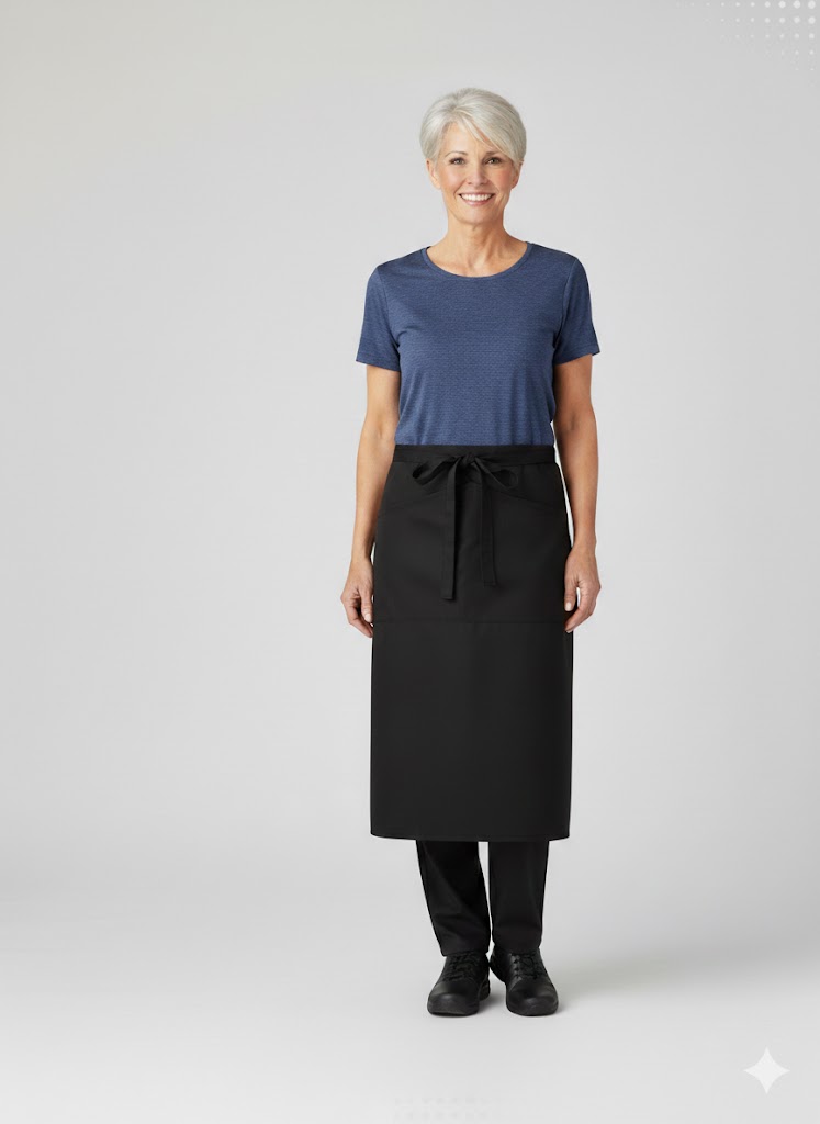 Kollektionen tilbyder en mangfoldig vifte af tilbehør såsom forklæder i forskellige farver, mønstre og stilarter, hvilket giver dig mulighed for at vælge den ideelle løsning til dine specifikke behov. Lavet af en slidstærk blanding af 65% polyester og 35% bomuld med en vægt på 210 g/m², er dette forklæde ikke blot praktisk men også holdbart og let at vedligeholde.