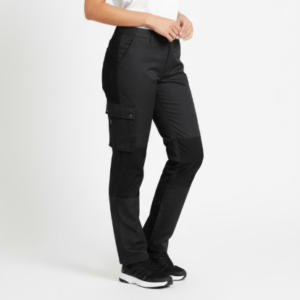 De 4-vejs stretchpaneler ved knæene og bagpå sikrer, at du har fuld bevægelsesfrihed, mens den justerbare elastik bag i linningen, kombineret med bæltestropperne, giver en perfekt pasform og optimal komfort, selv under intensive arbejdssituationer. Bukserne har en moderat taljehøjde og en smal benvidde, som skaber en slank silhuet.
