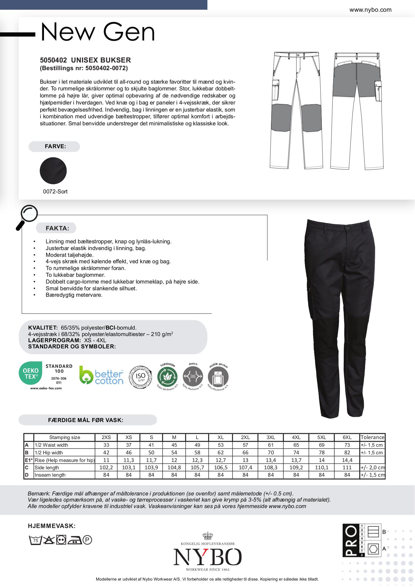 NEW GEN kollektionen er et skridt frem mod fremtiden med multifunktionelle og fleksible designelementer, som opfylder de høje forventninger til moderne arbejdstøj. Slidstærke materialer og gennemarbejdede designdetaljer sikrer en perfekt pasform og komfort, som bevarer det minimalistiske udtryk. Disse bukser er særligt egnede til industriel vask og bevarer deres form og strækevner hele dagen.