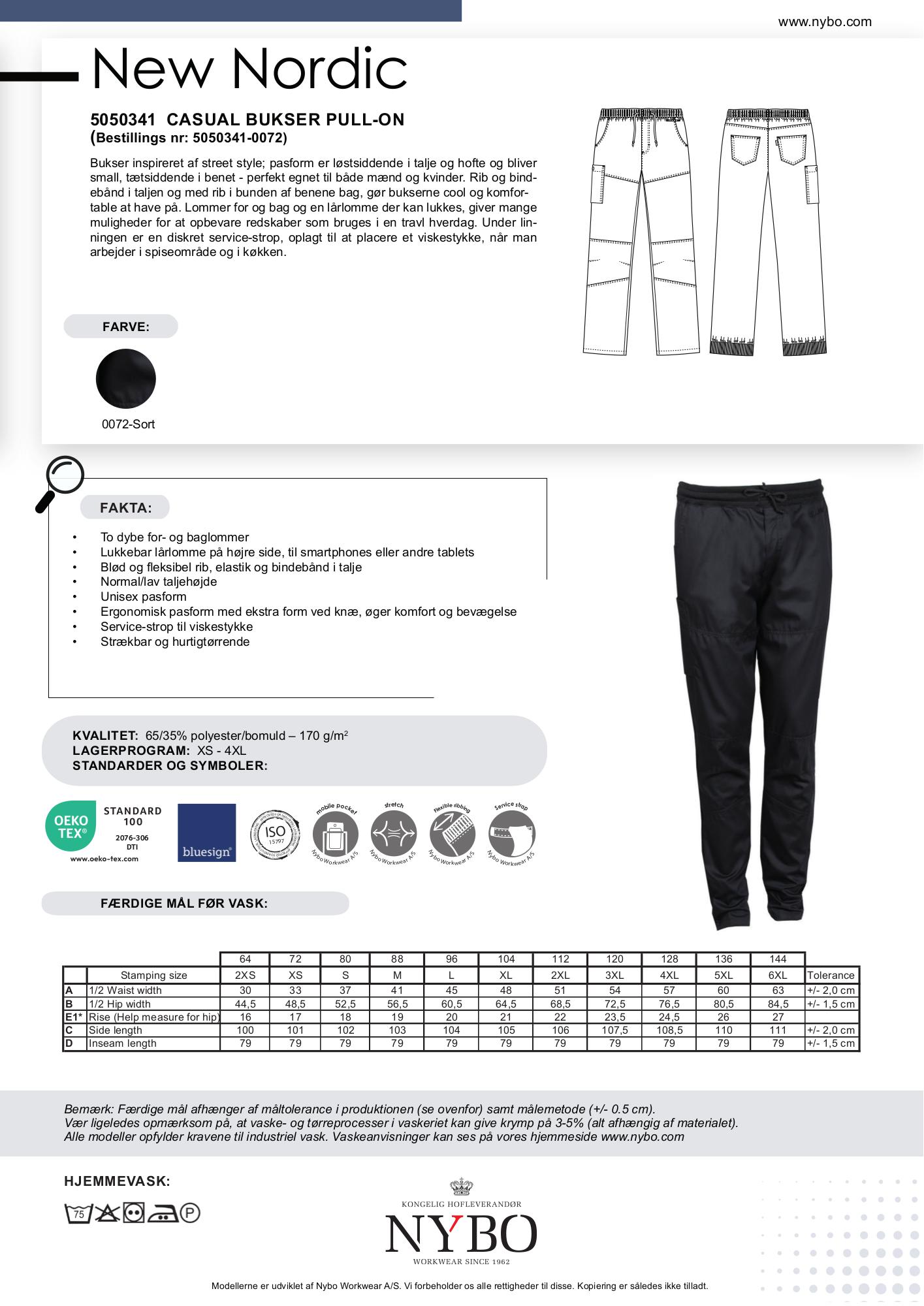 Nybo Workwear A/S præsenterer disse stilfulde og funktionelle sorte unisex New Nordic bukser, der kombinerer street style med praktisk anvendelighed. Designet med både mænd og kvinder i tankerne, tilbyder bukserne en løstsiddende pasform i taljen og hofterne med en smallere, tætsiddende silhuet i benene. Rib og bindebånd i taljen samt rib i bunden af benene bagpå sikrer komfort hele dagen. De mange lommer, inklusive to dybe for- og baglommer og en lukkebar lårlomme på højre side, gør det nemt at opbevare vigtige redskaber eller smartphones, hvilket gør bukserne ideelle til en travl hverdag.