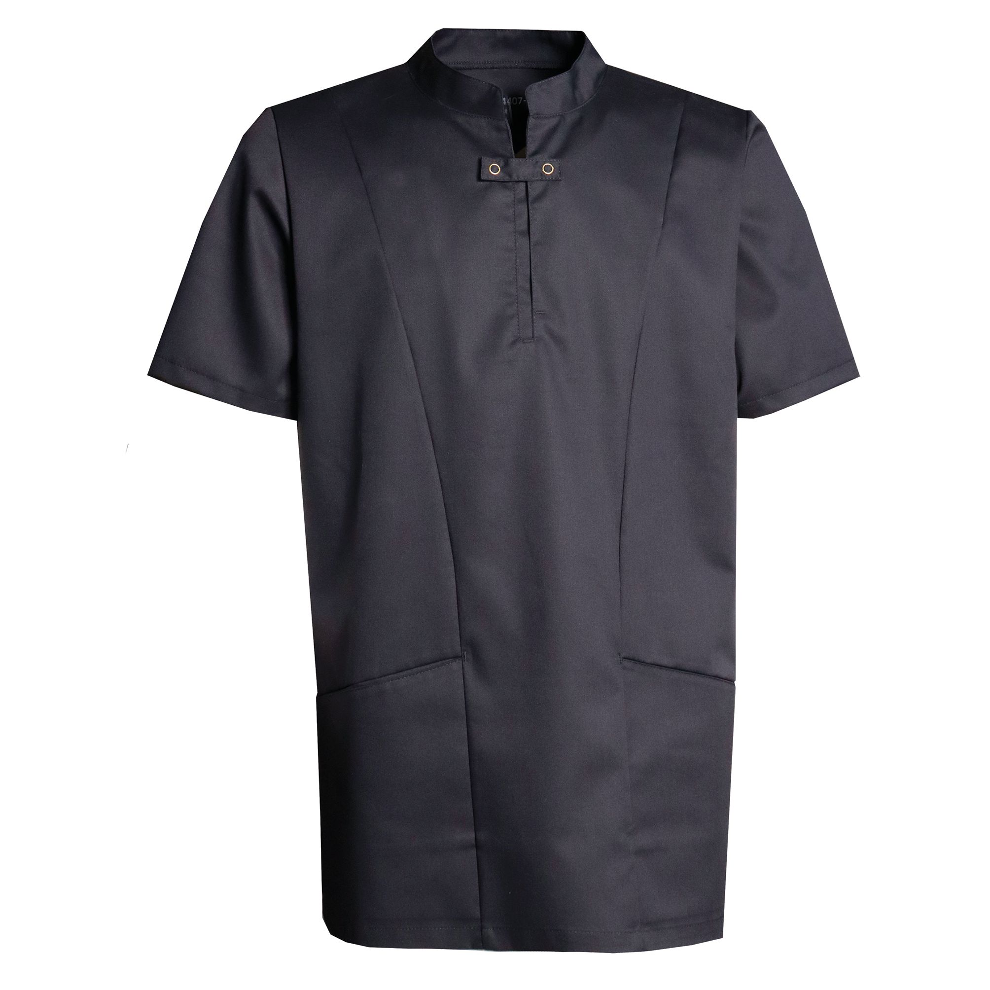 Den asiatisk inspirerede wellness-serie er skabt i stræk-materialer, og er designet til at reflektere ro, balance og enkelthed, præcis som interiøret og stemningen i moderne wellness-centre. Det bløde og lette stof, 65% polyester og 35% bomuld, gør dette til den ideelle overdel for sundhedspersonale og andre fagfolk, der ønsker at kombinere komfort med et stilfuldt udtryk. Elegant trykknaps-lukning foran og praktiske hoftelommer fuldender looket.