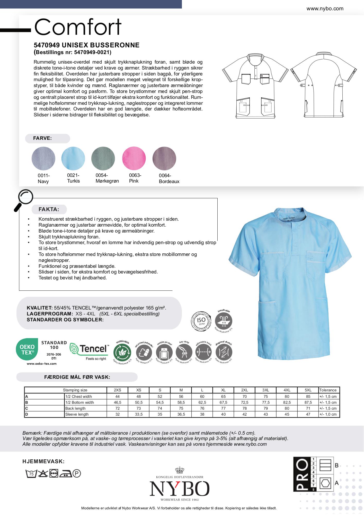COMFORT kollektionen er designet med det pleje- og servicepersonale i tankerne, der prioriteter komfort og professionalisme. Med materialer som TENCEL™ og genanvendt polyester får du tekstiler, der er både bløde og lette, samtidig med at de højner åndbarhed og farveægthed. Seriens miljøvenlige initiativer, der inkluderer low-impact produktionsmetoder, gør den også til et bæredygtigt valg.