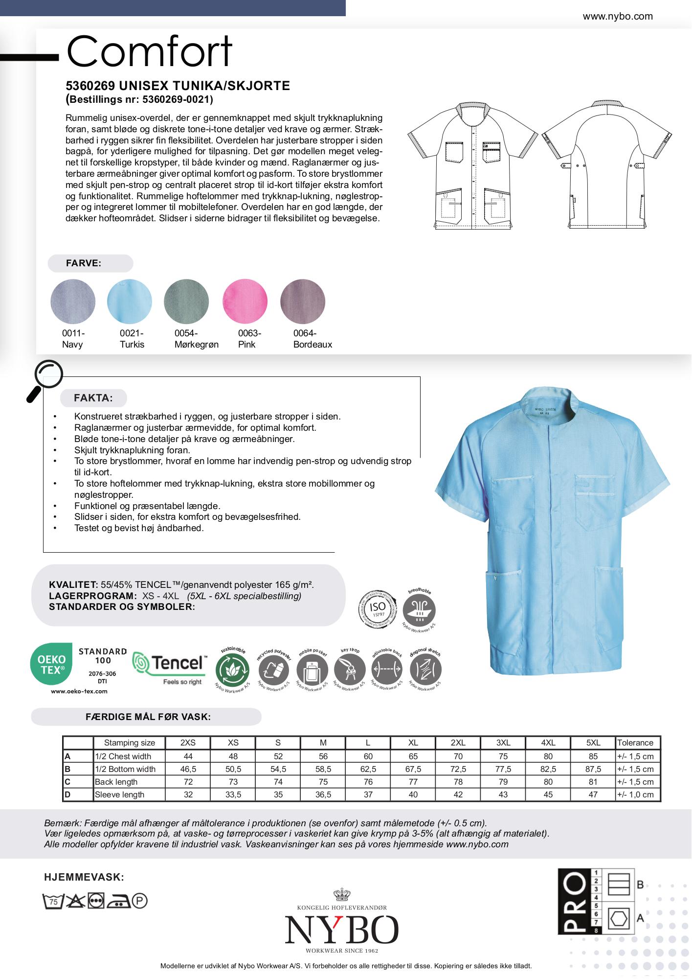Comfort-kollektionen tilbyder en serie af overdele, der er specielt udviklet til pleje- og servicepersonale. Denne serie kombinerer stil og funktionalitet med raglanærmer, store lommer og lette materialer for at opfylde behovet for en behagelig og professionel arbejdsdag. Tekstilerne, bestående af TENCEL™ og genanvendt polyester, sikrer høj åndbarhed, farveægthed og komfort, samtidig med at de understøtter bæredygtige produktionsmetoder.