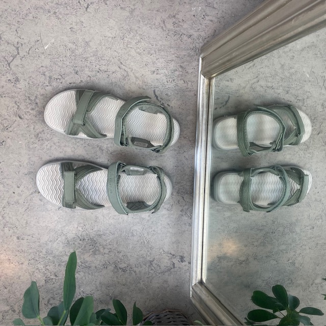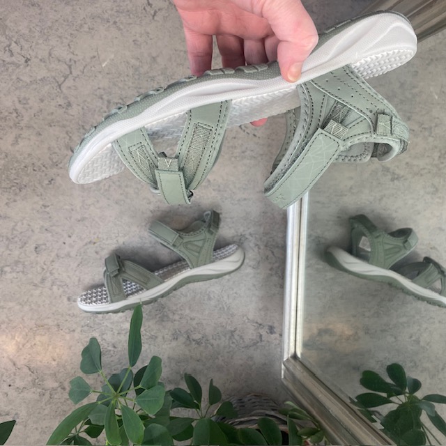 Sportssandal i olivengrøn farve med ekstra detaljer ved velcroremmene