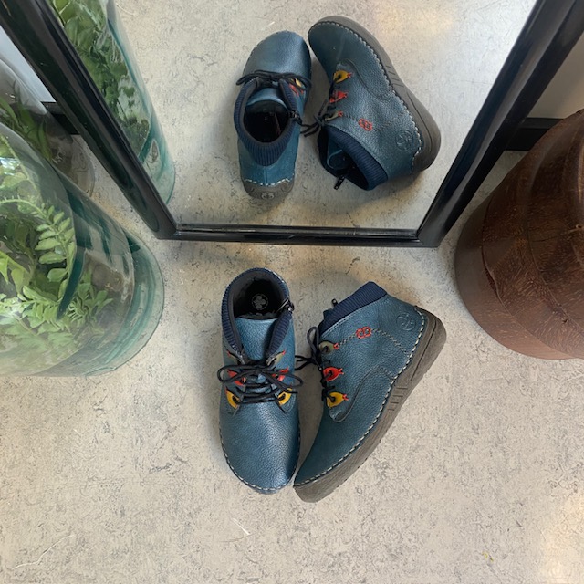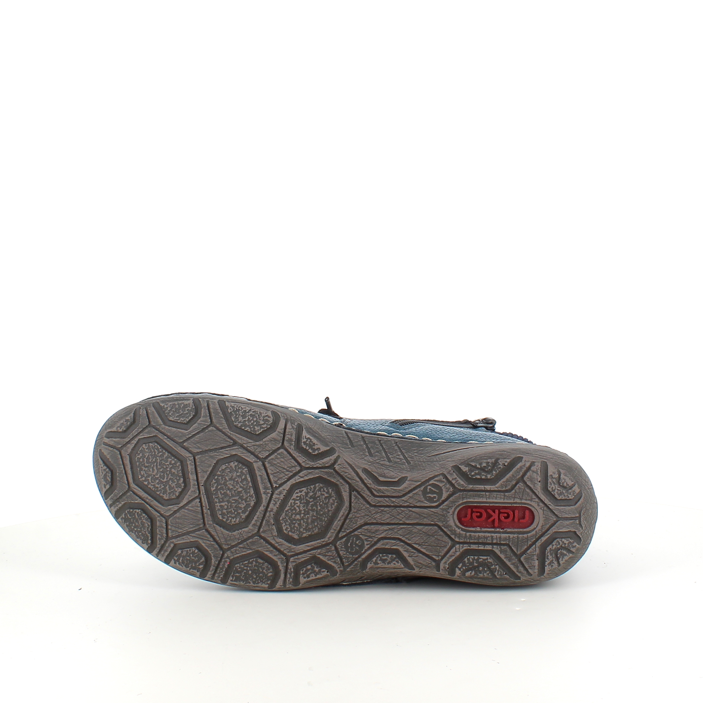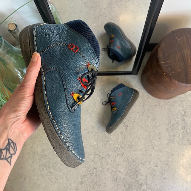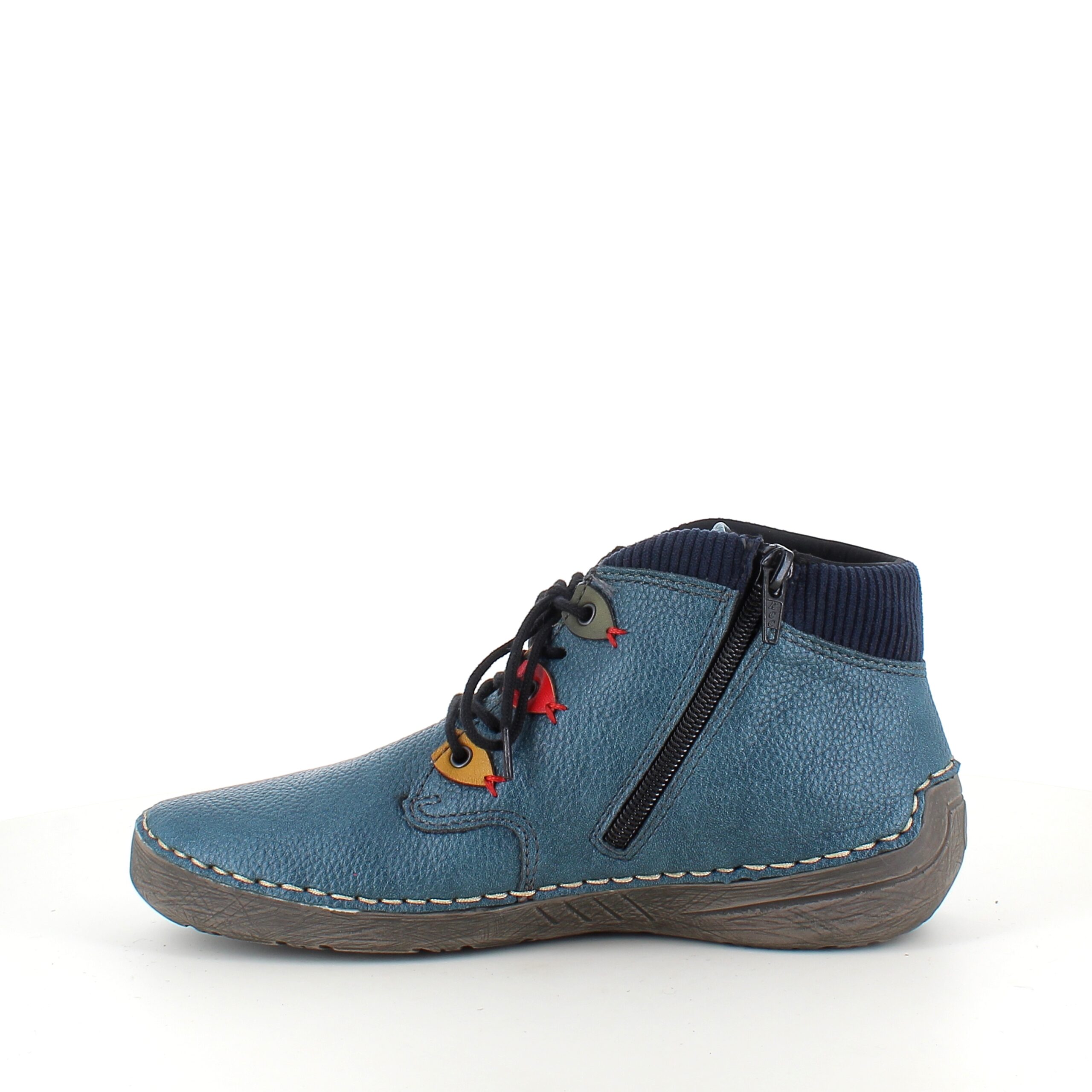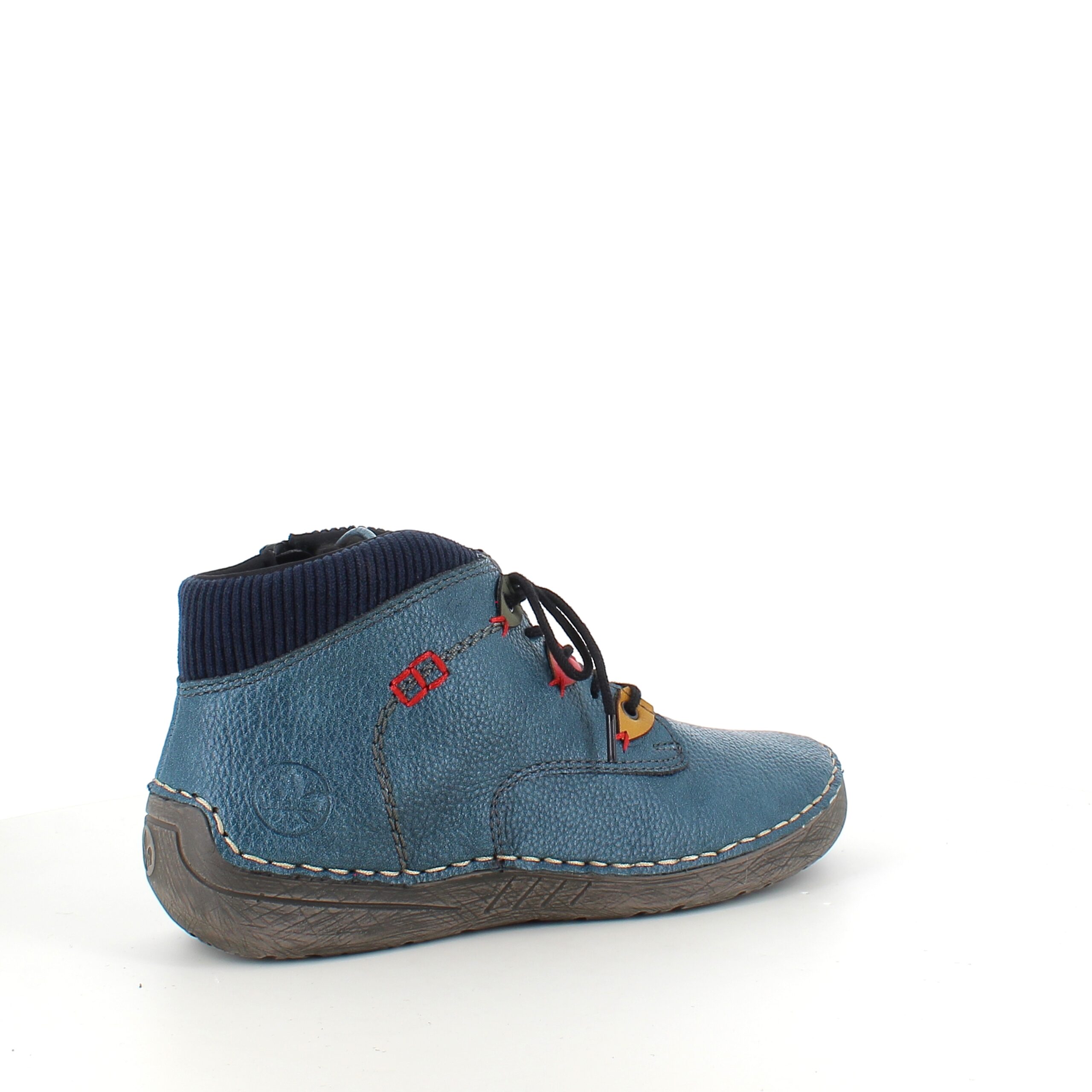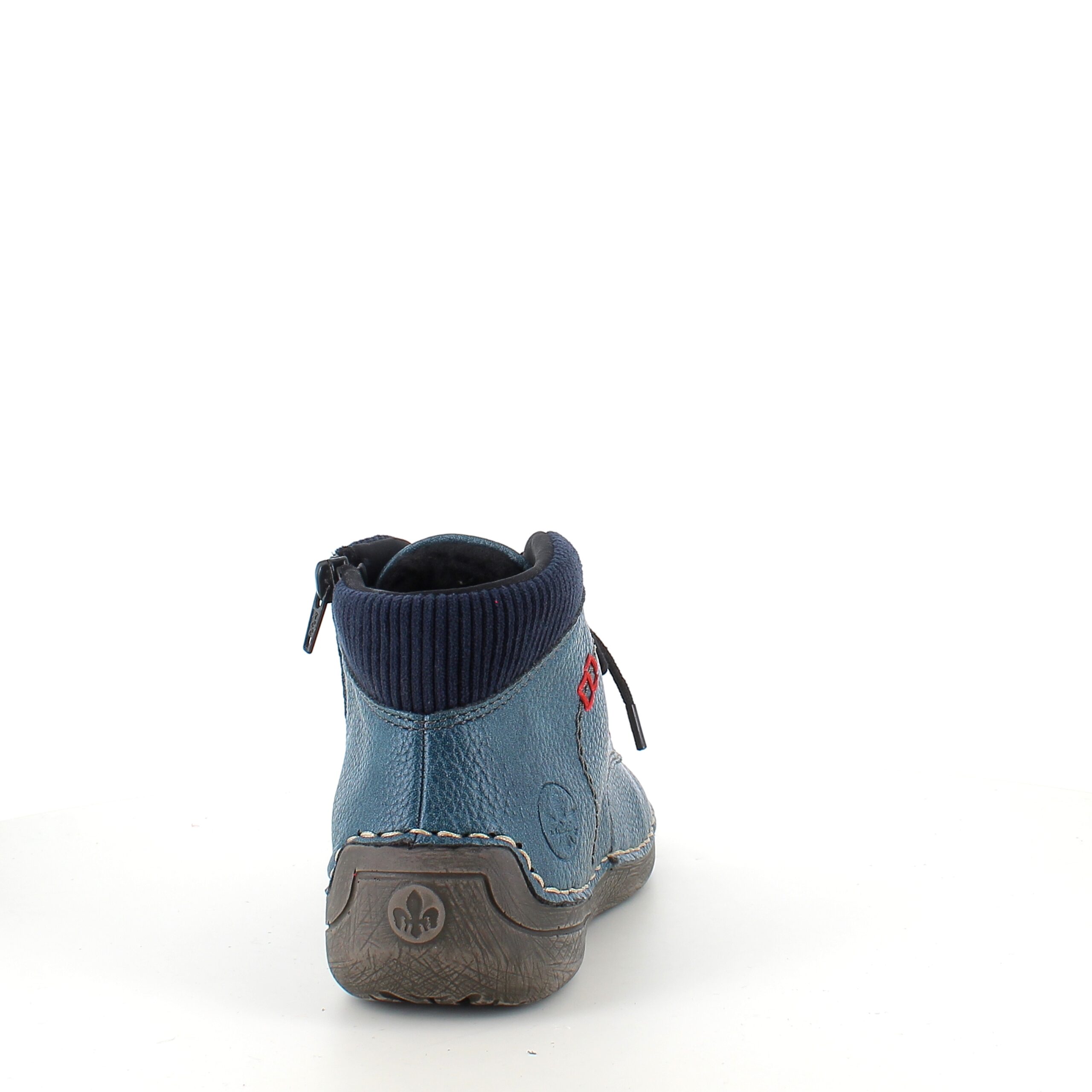 Rieker – kort blå støvle med snøre og lynlås.