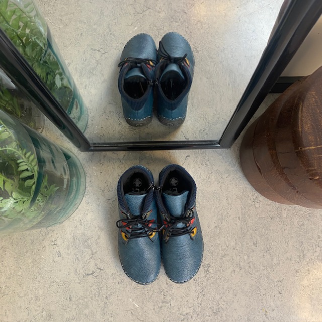 Støvlen er fremstillet i imiteret blåt skind, der giver et flot og levende udtryk, samtidig med at materialet føles blødt og behageligt mod foden.