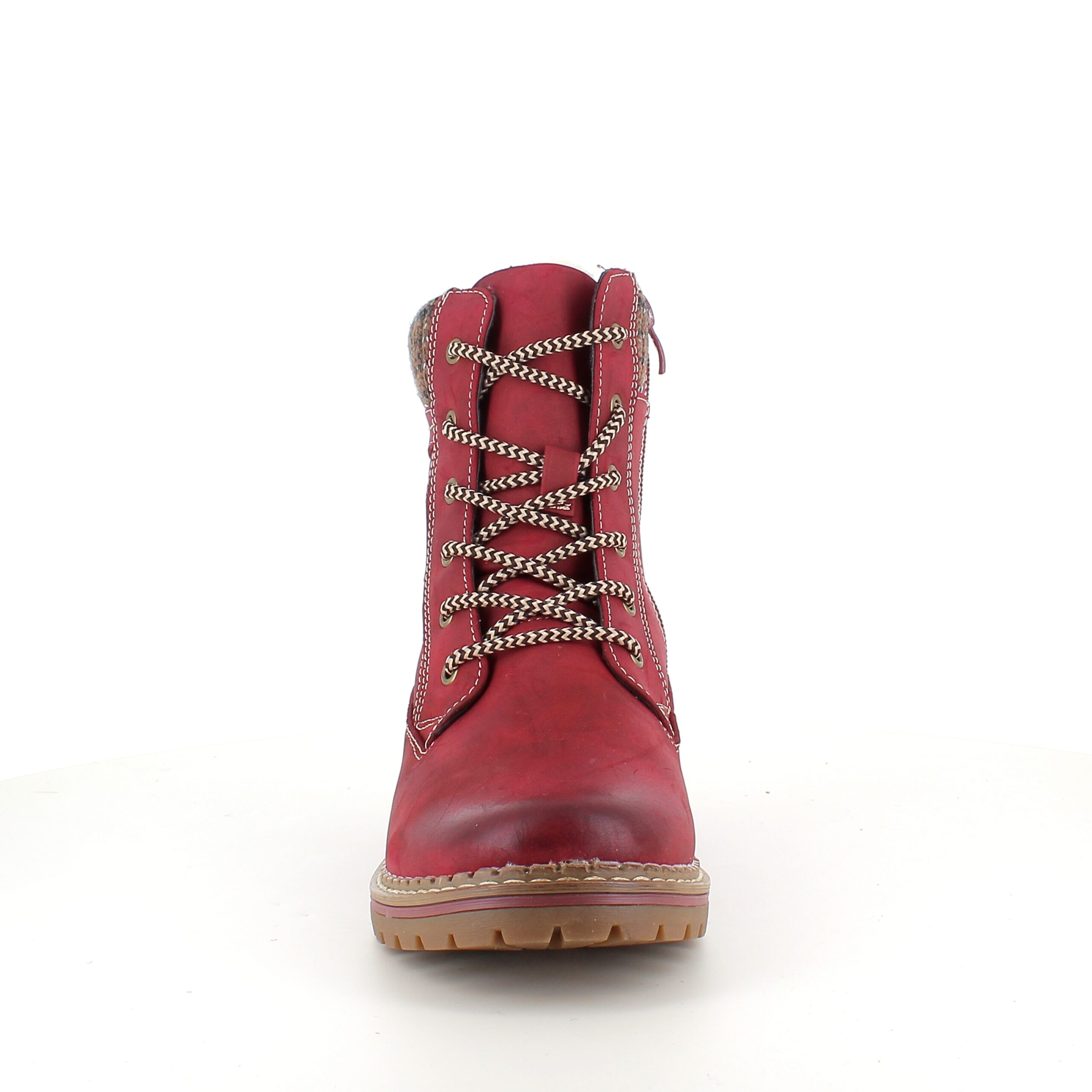 Rød damestøvle med snørebånd, lynlås og varmt for – dekorativ spænde og TPR-sål