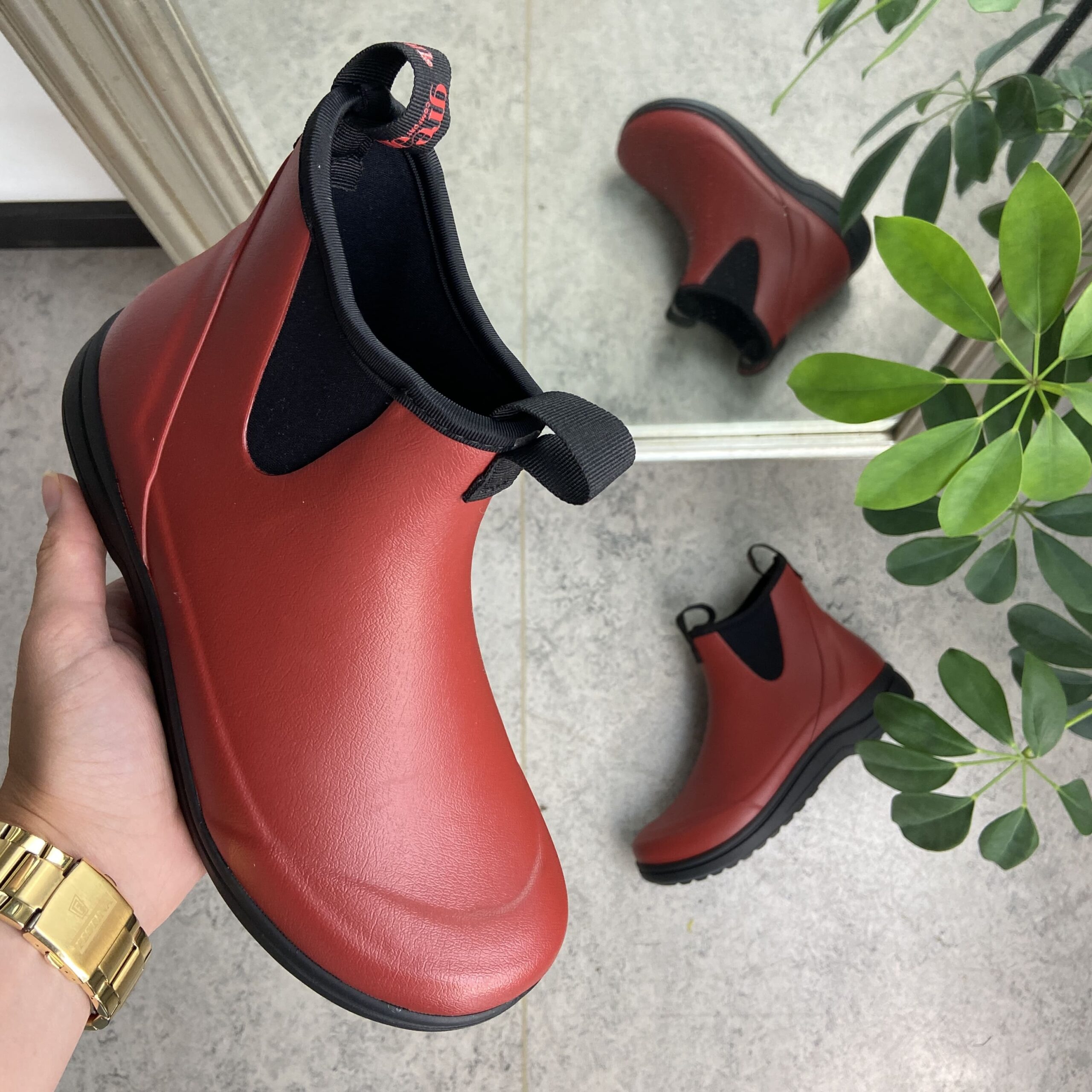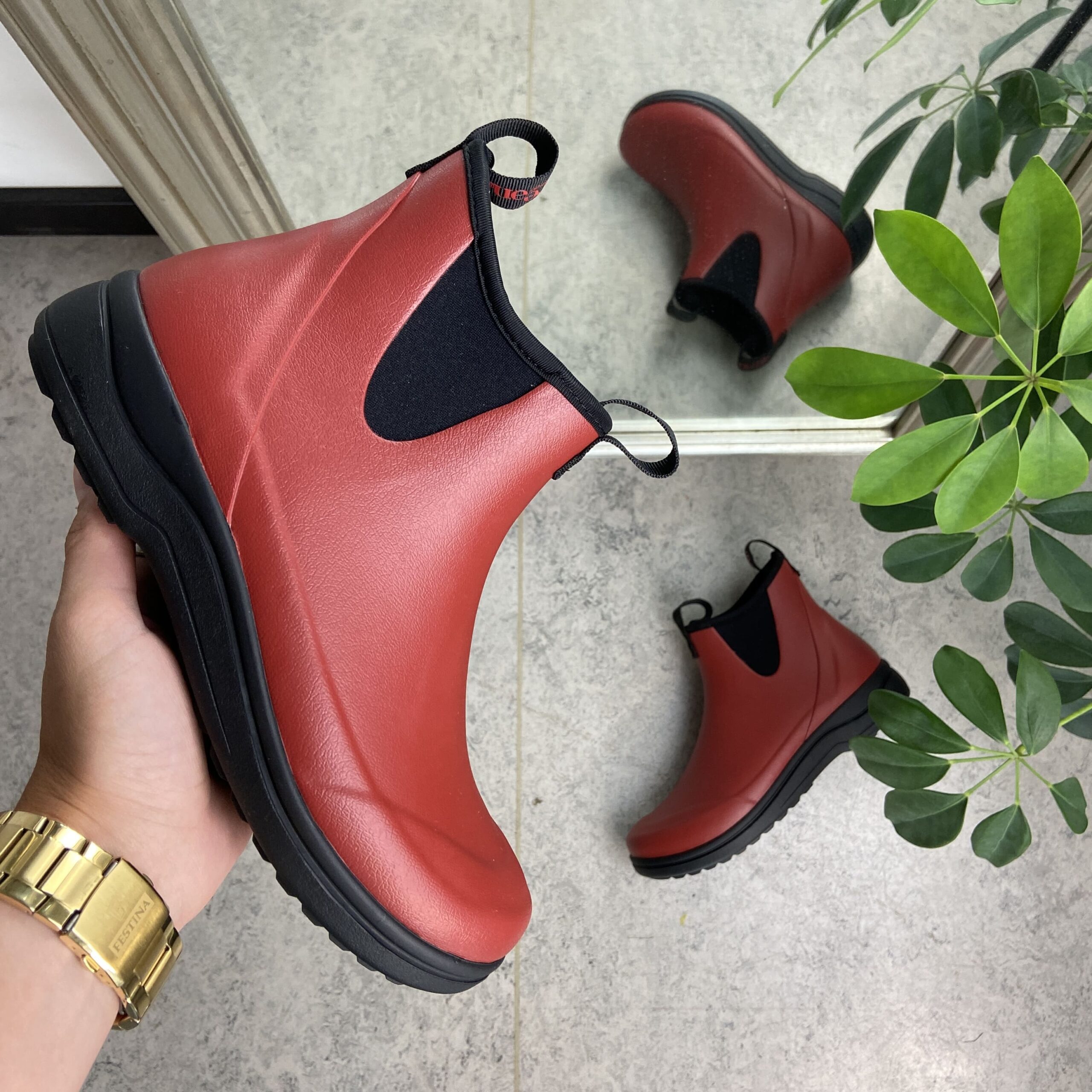 Rød luksus gummistøvle med svangstøtte fra Green Comfort