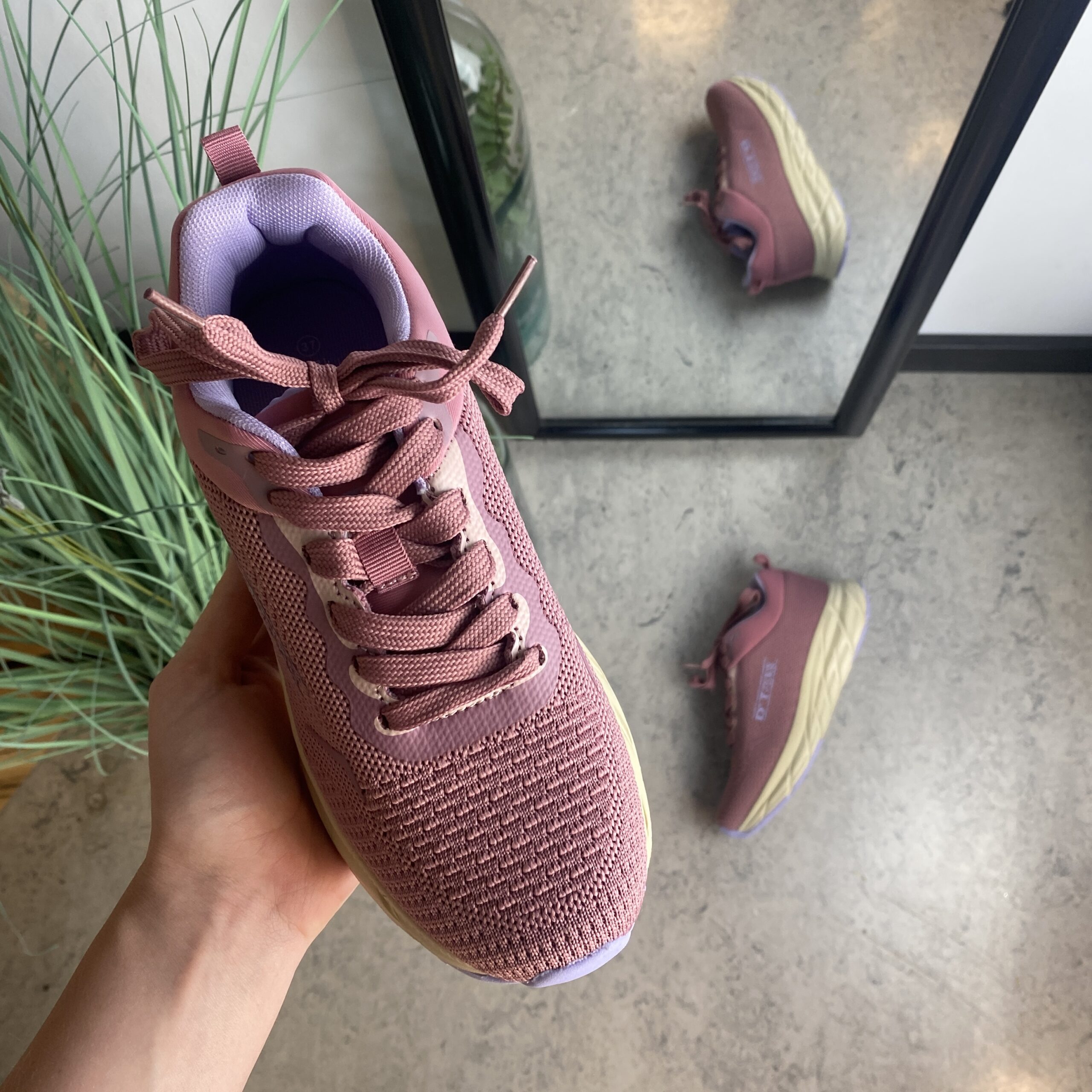 Rosa letvægtssko med stødabsorberende sål