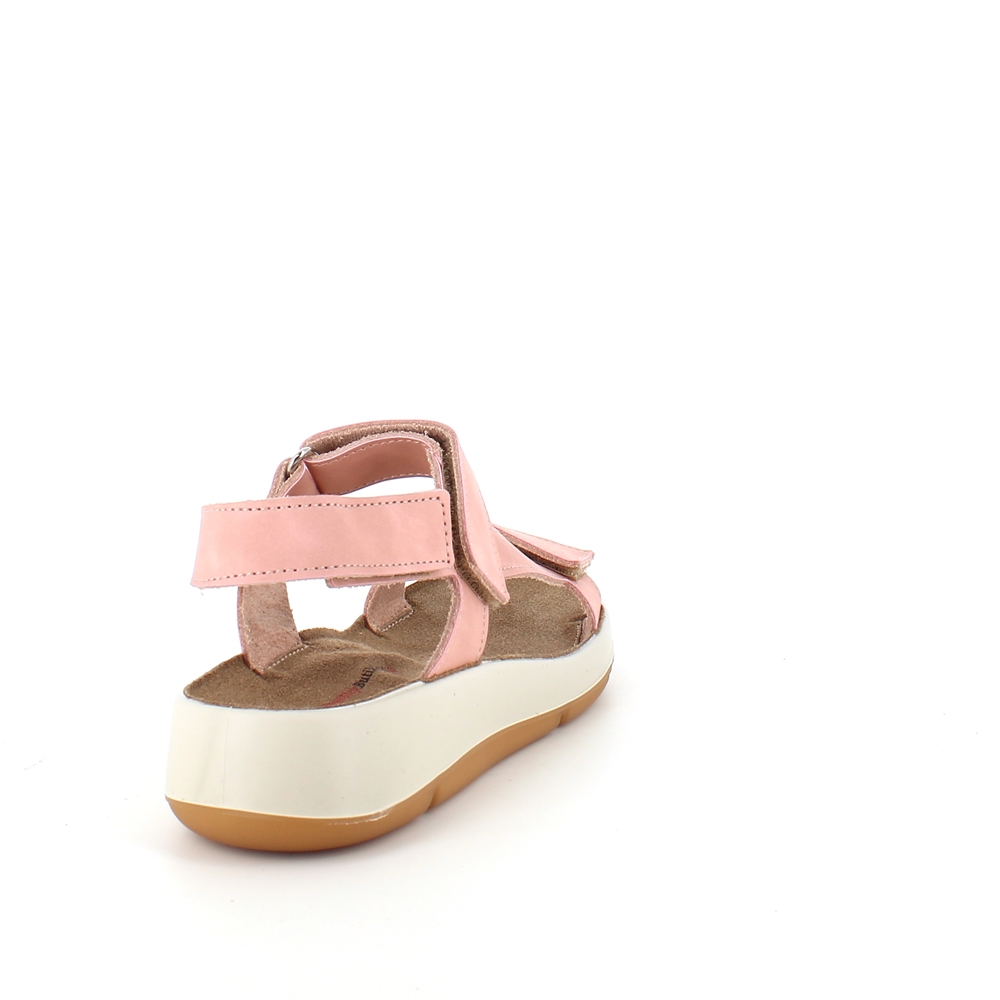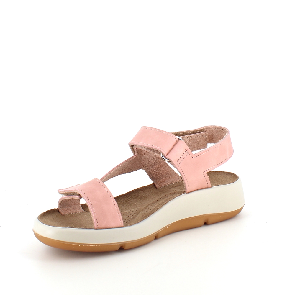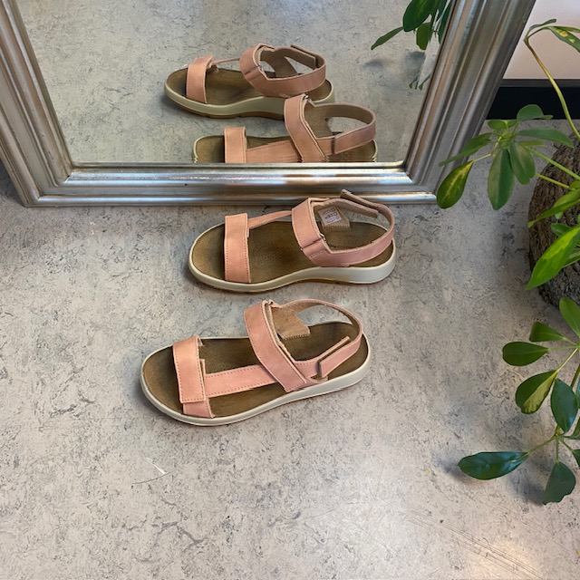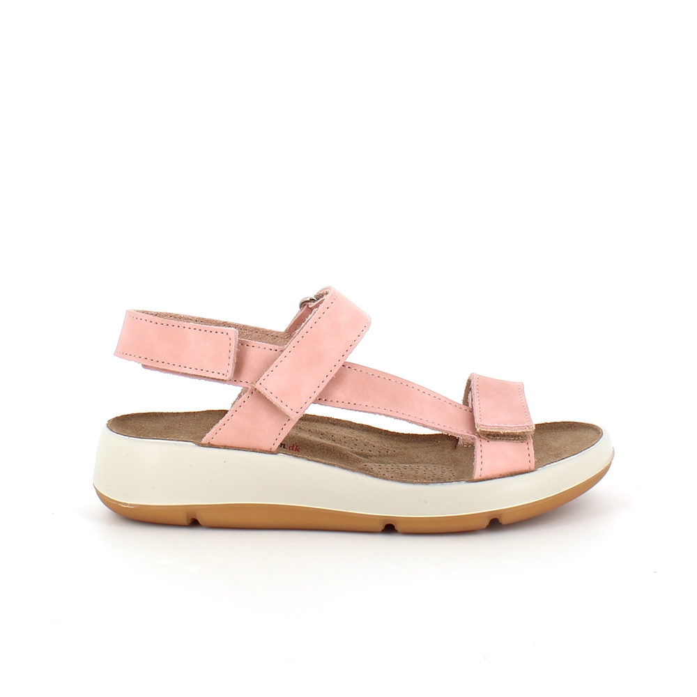 Rosa skindsandal med tre justerbare remme og svangstøtte