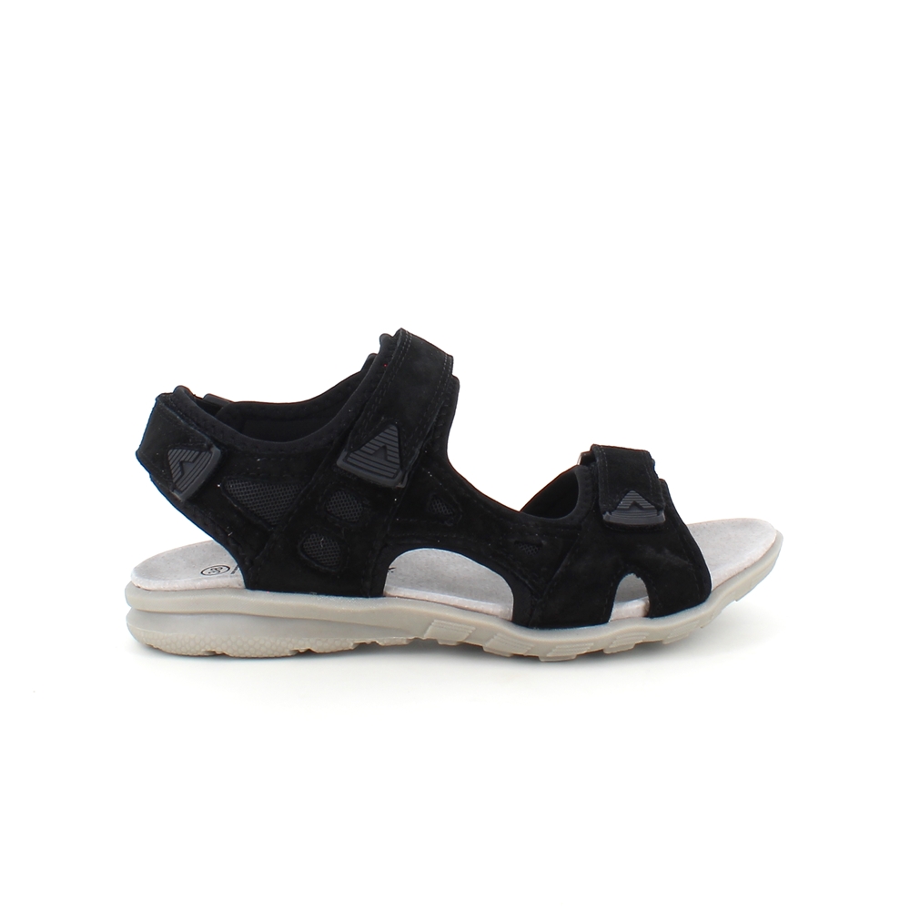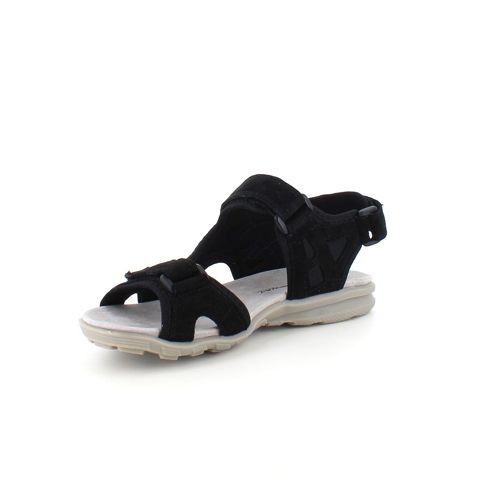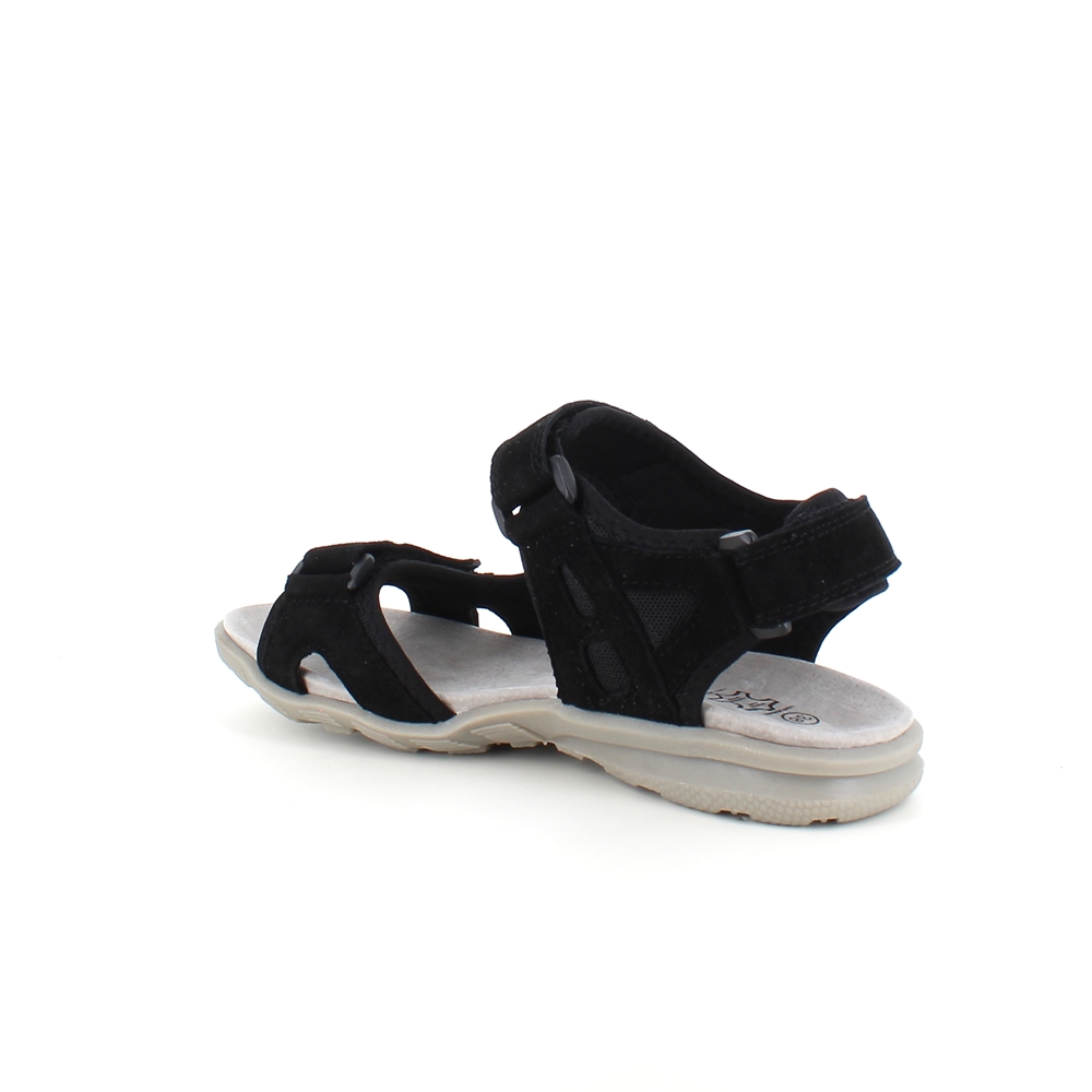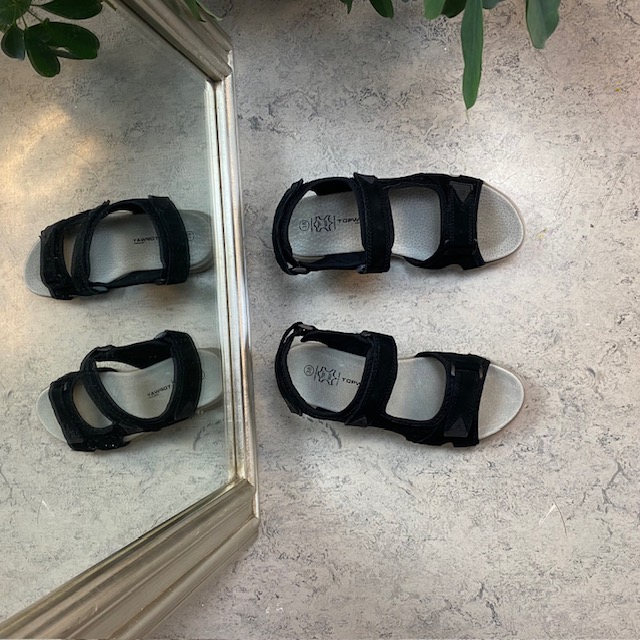 Flot sandal med brede regulerbare skind remme i sort.