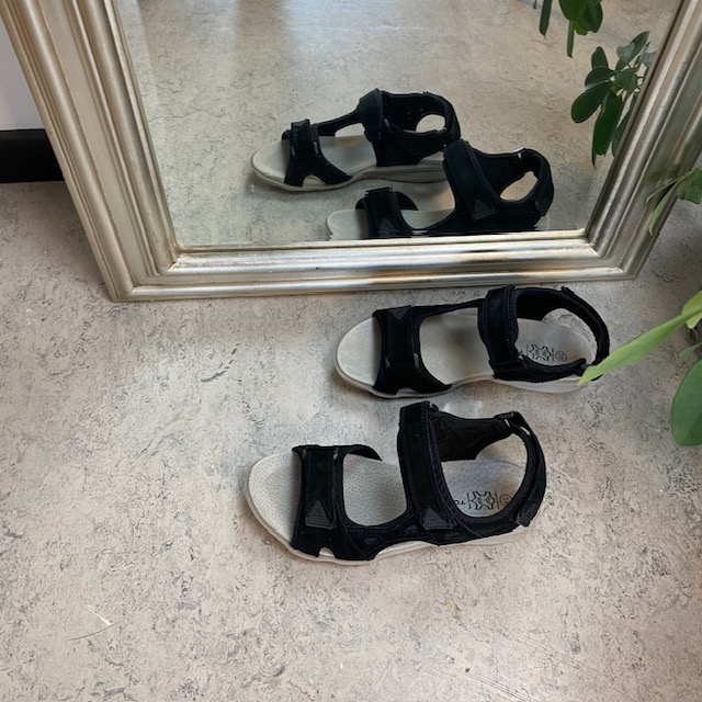 Sandal med lædersål og let svangstøtte i sort