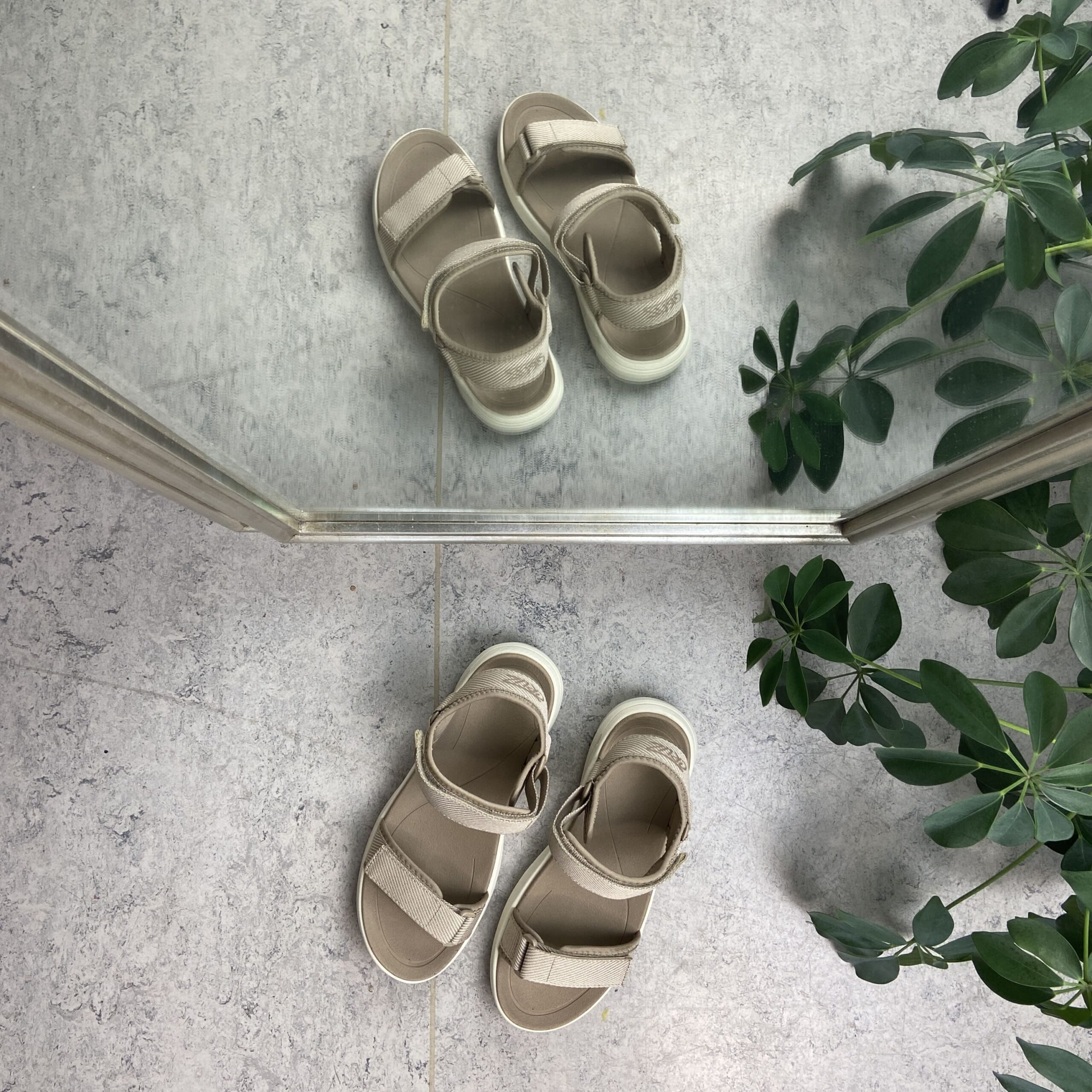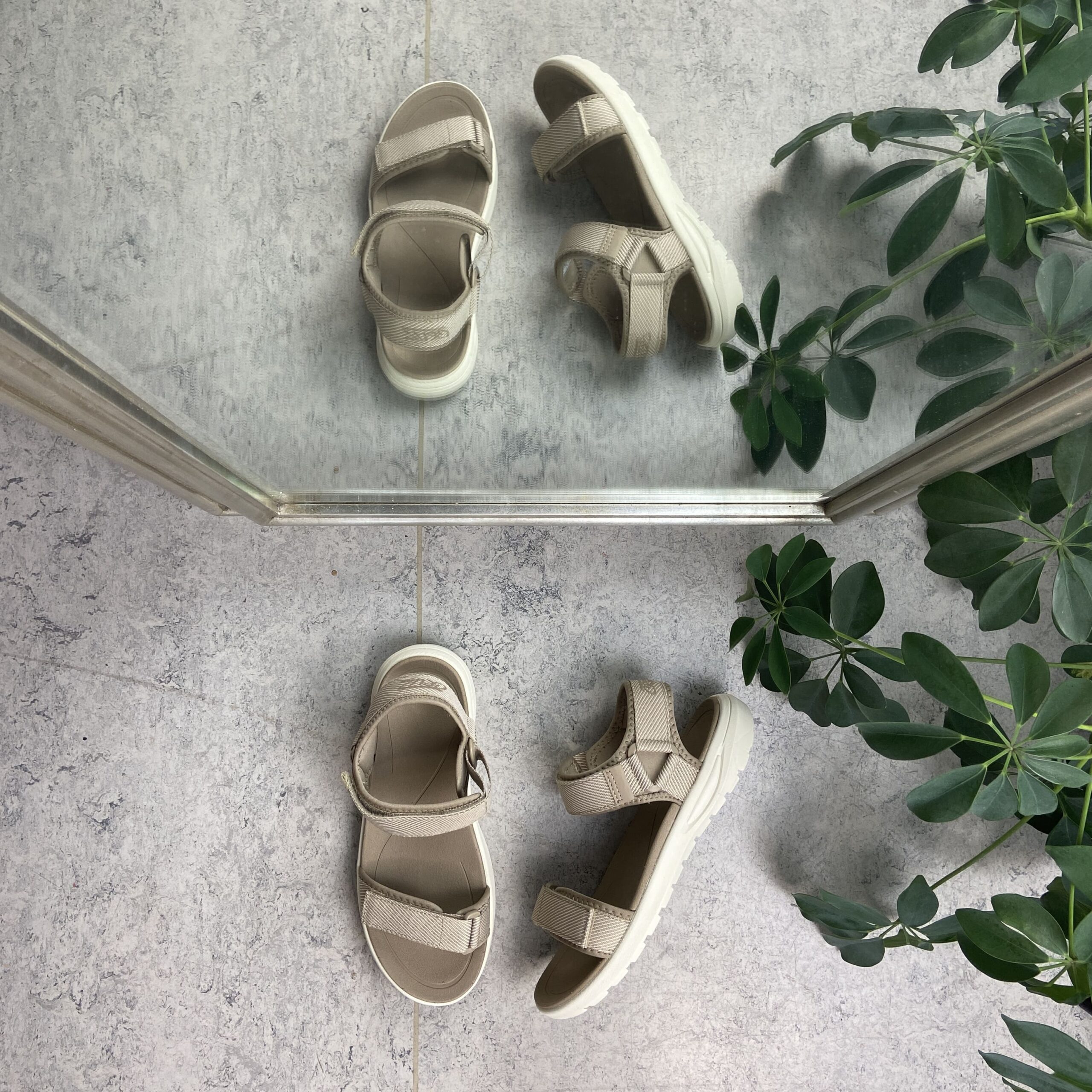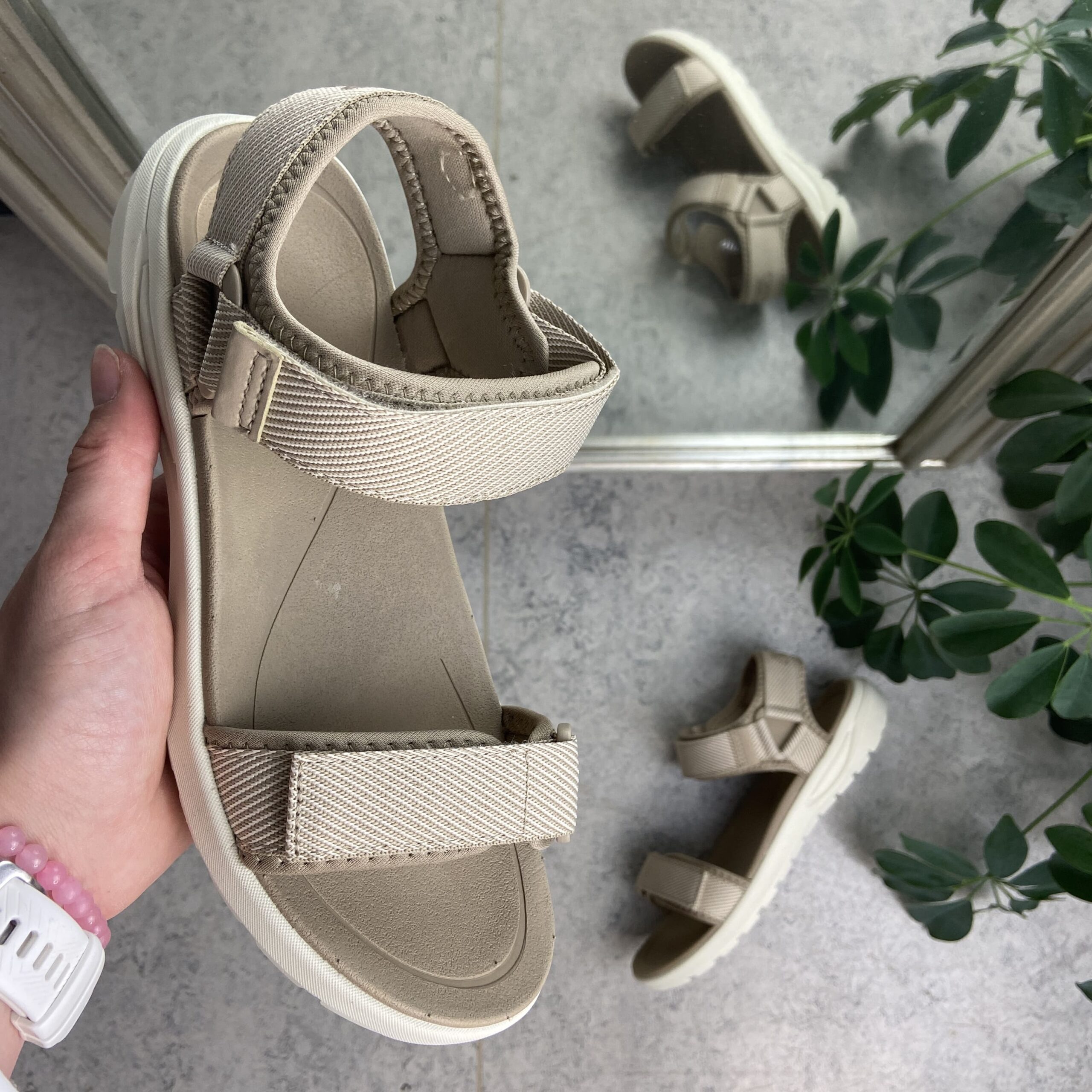 Sandfarvet let sandal med brede remme