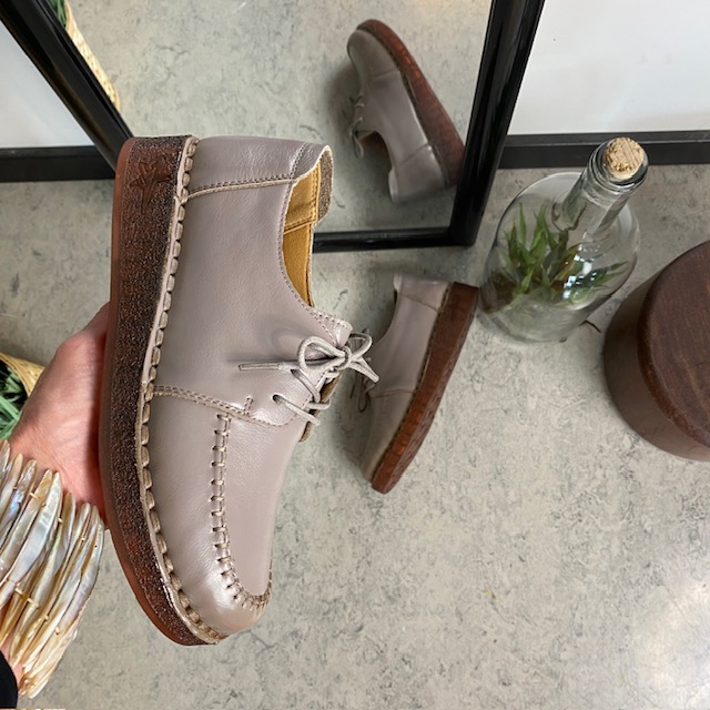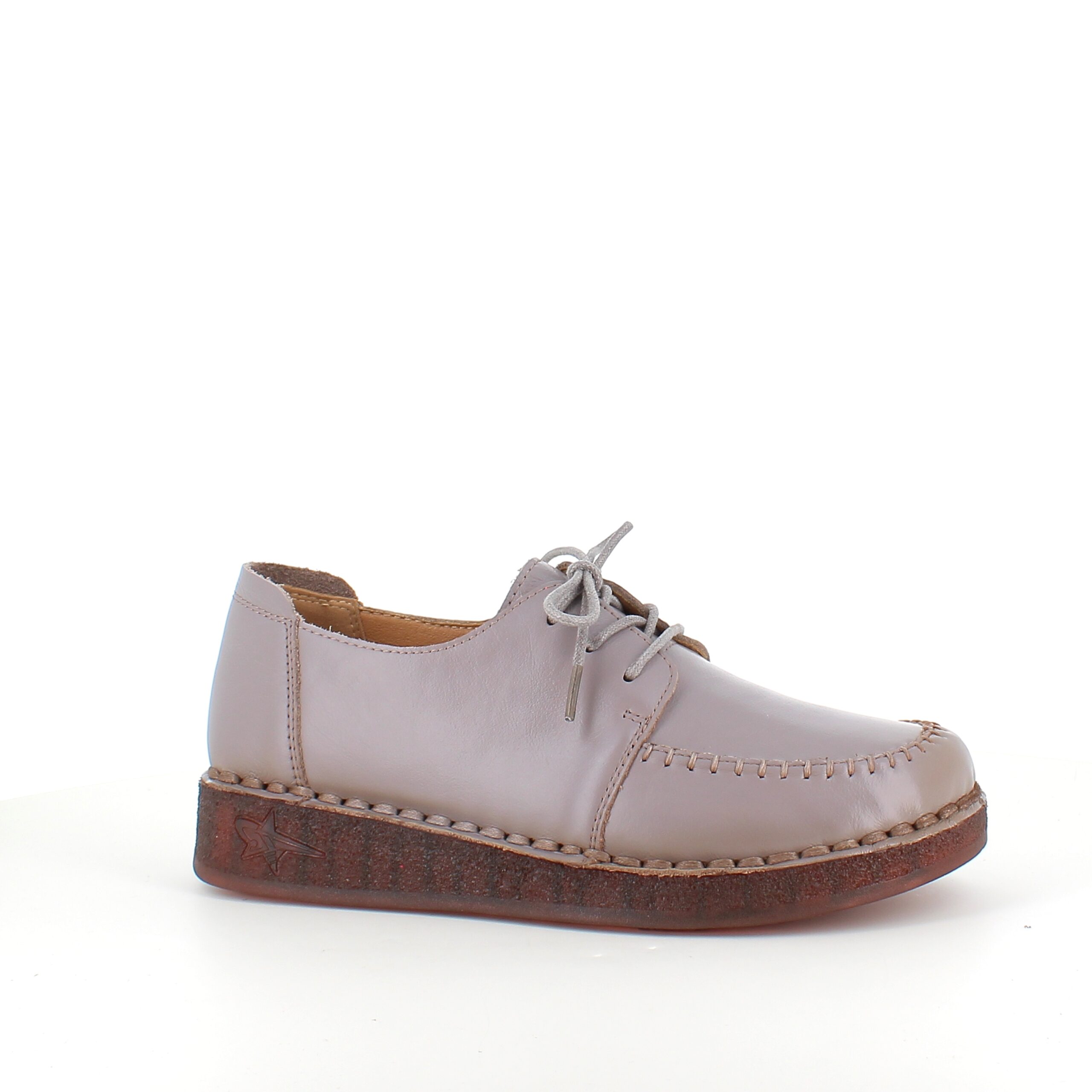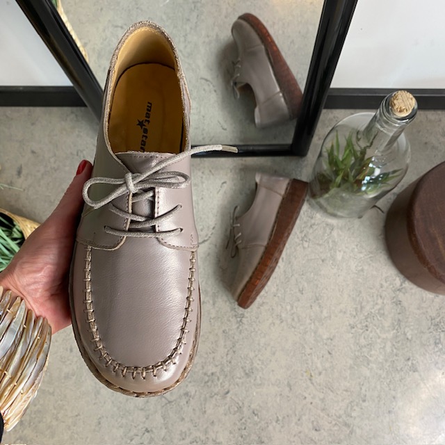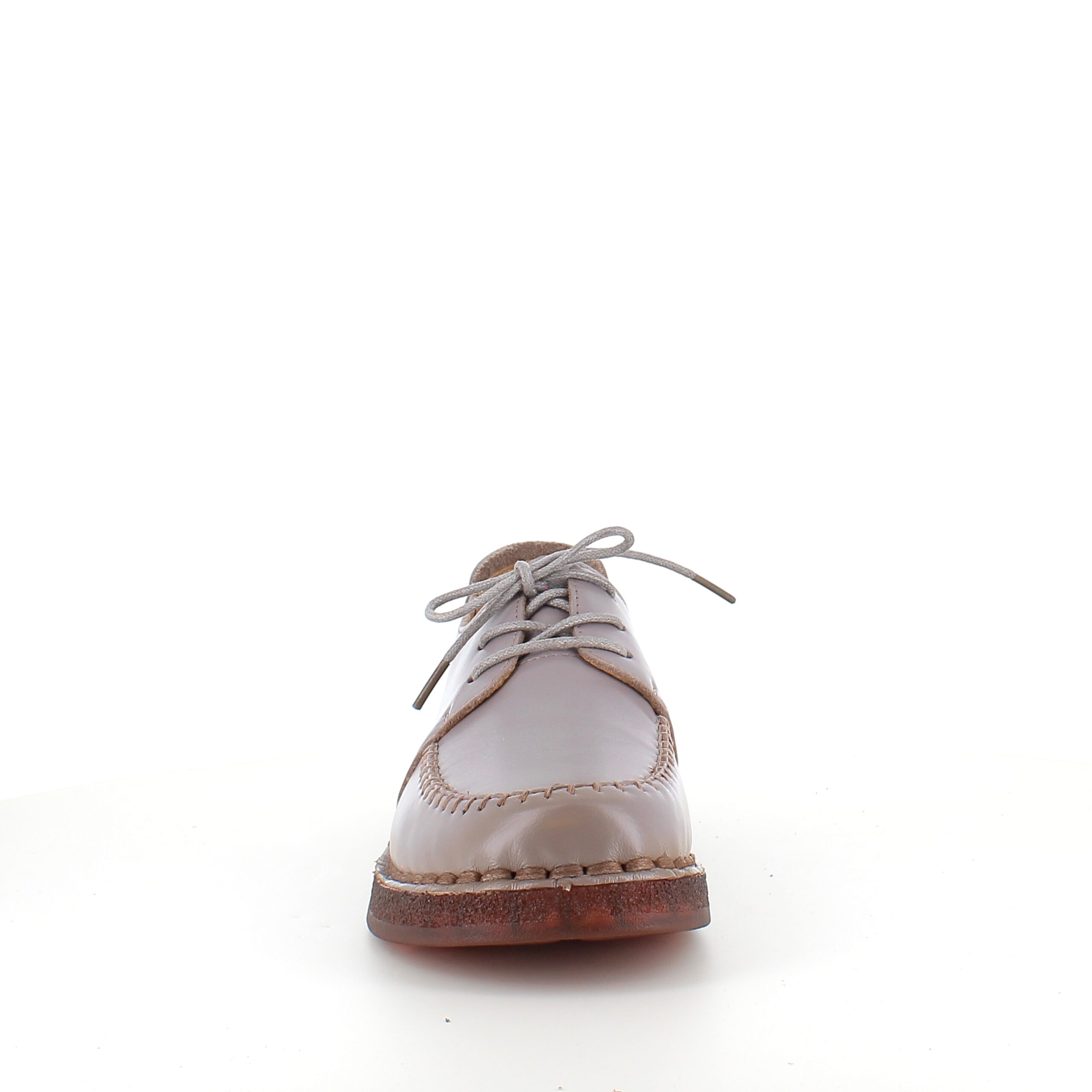 Snøresko i sandfarvet skind med flotte detaljer i skindets sammensyning på overdelen.