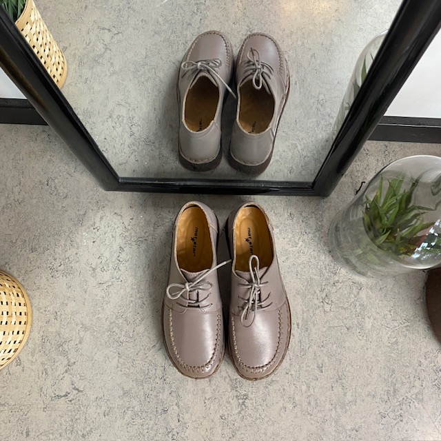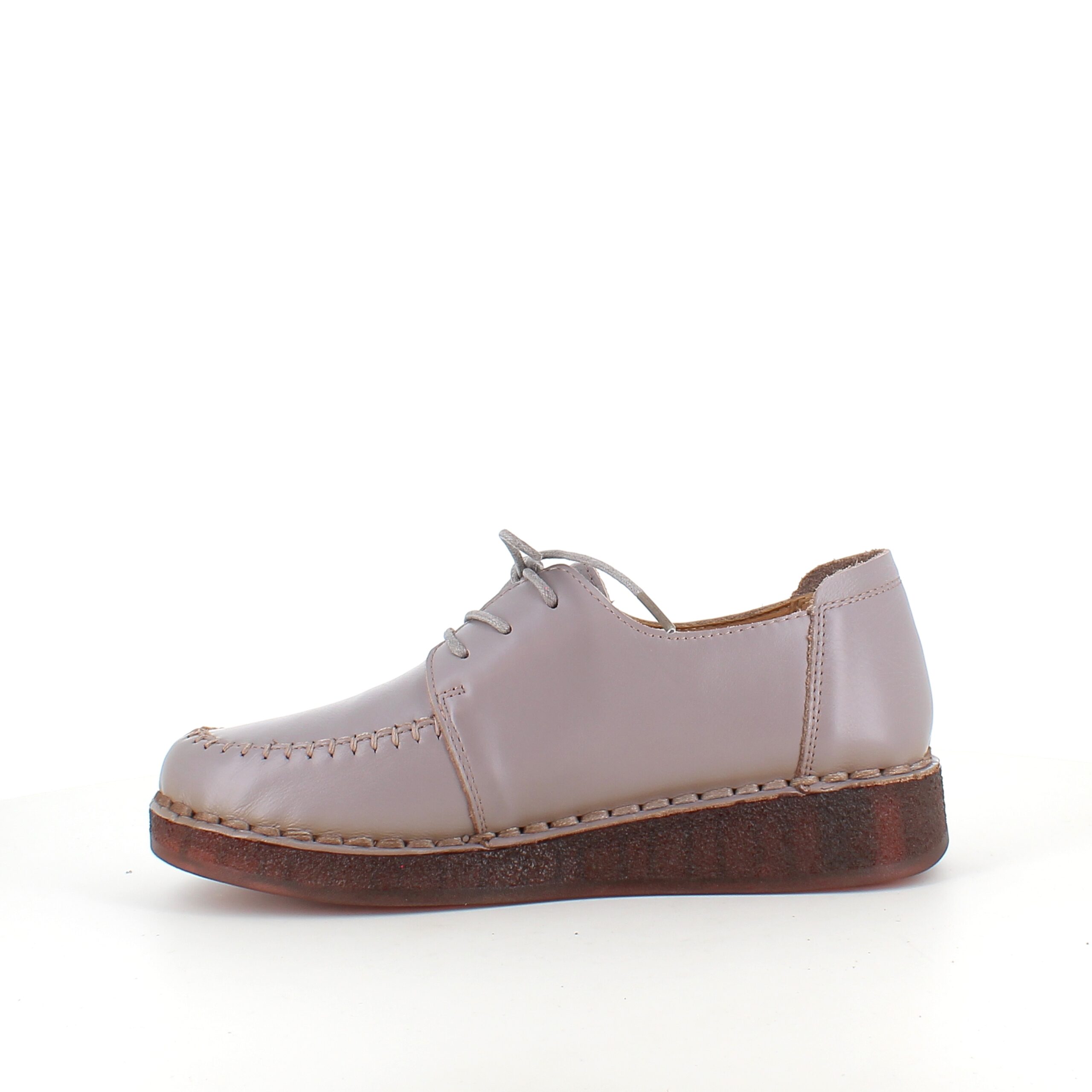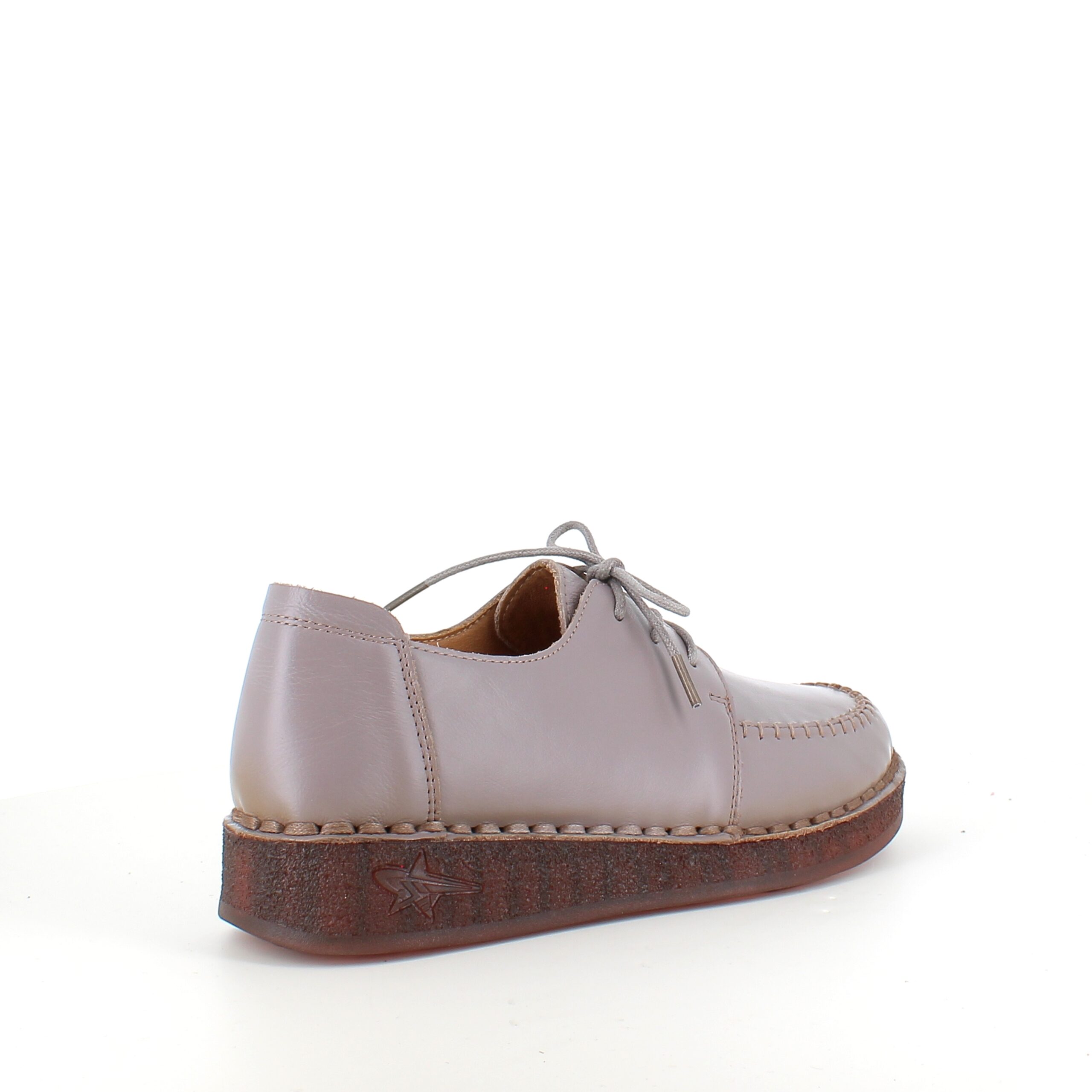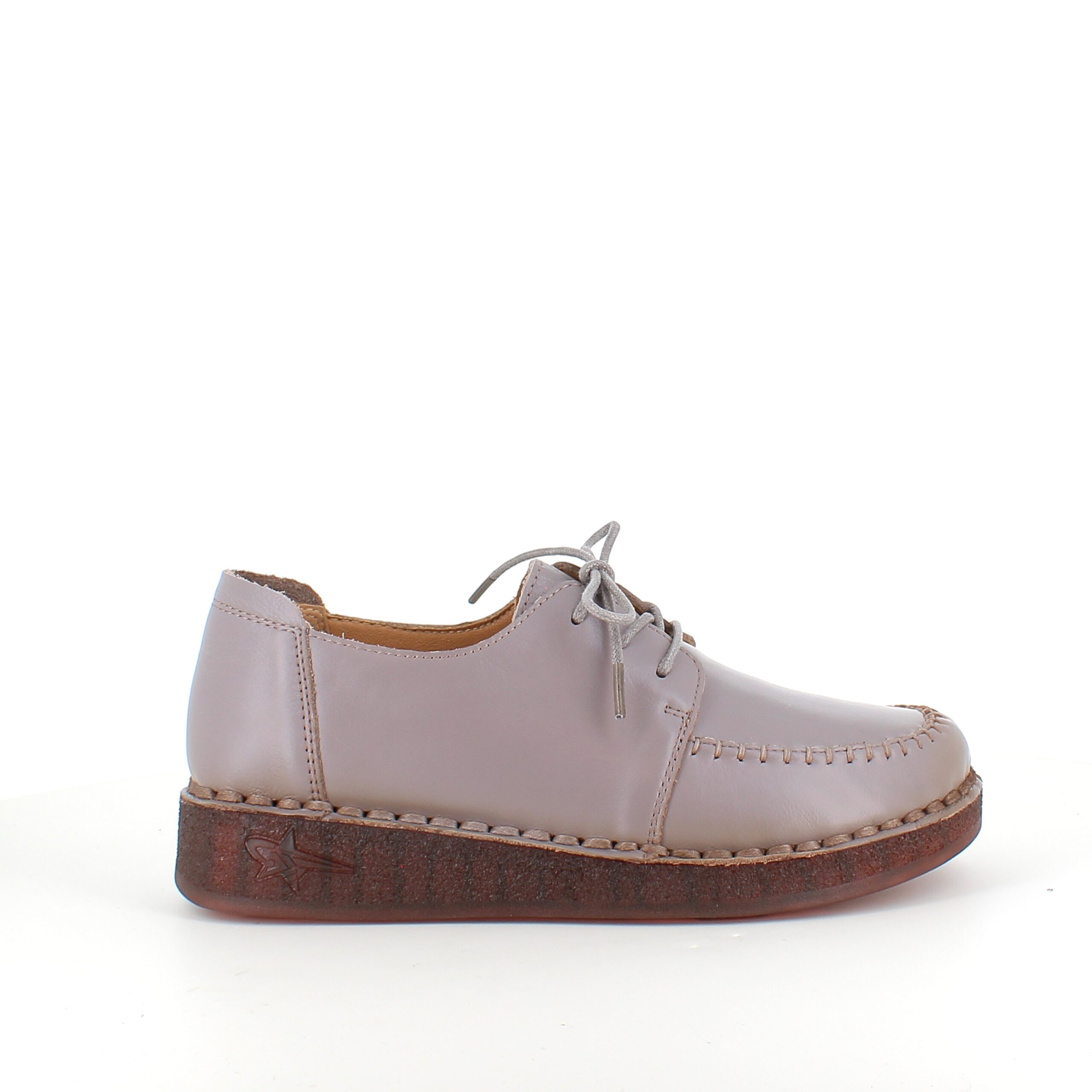 Snøresko i sandfarvet skind med flotte detaljer i skindets sammensyning på overdelen.