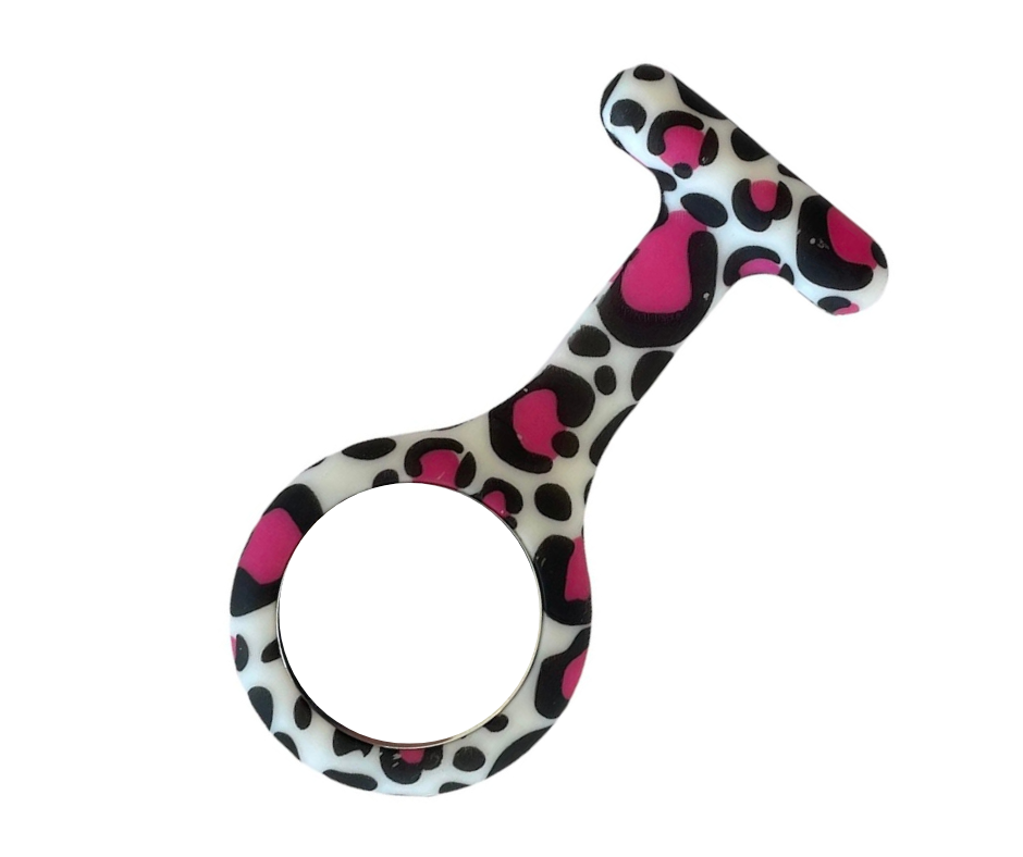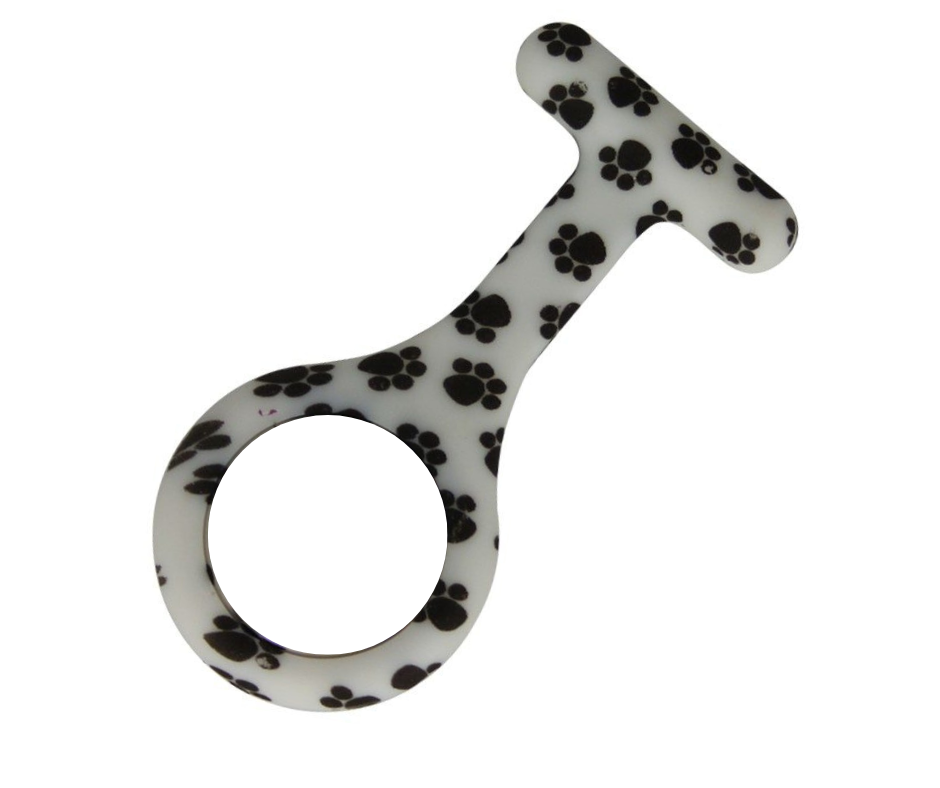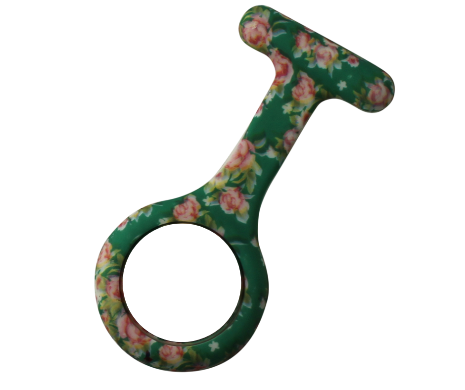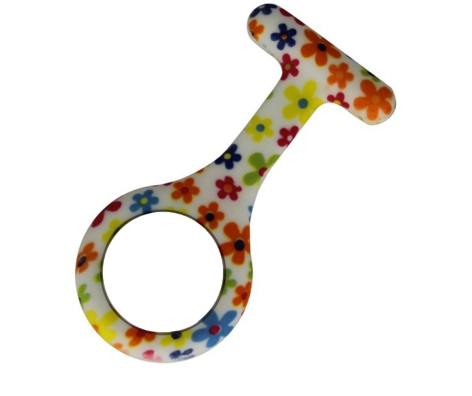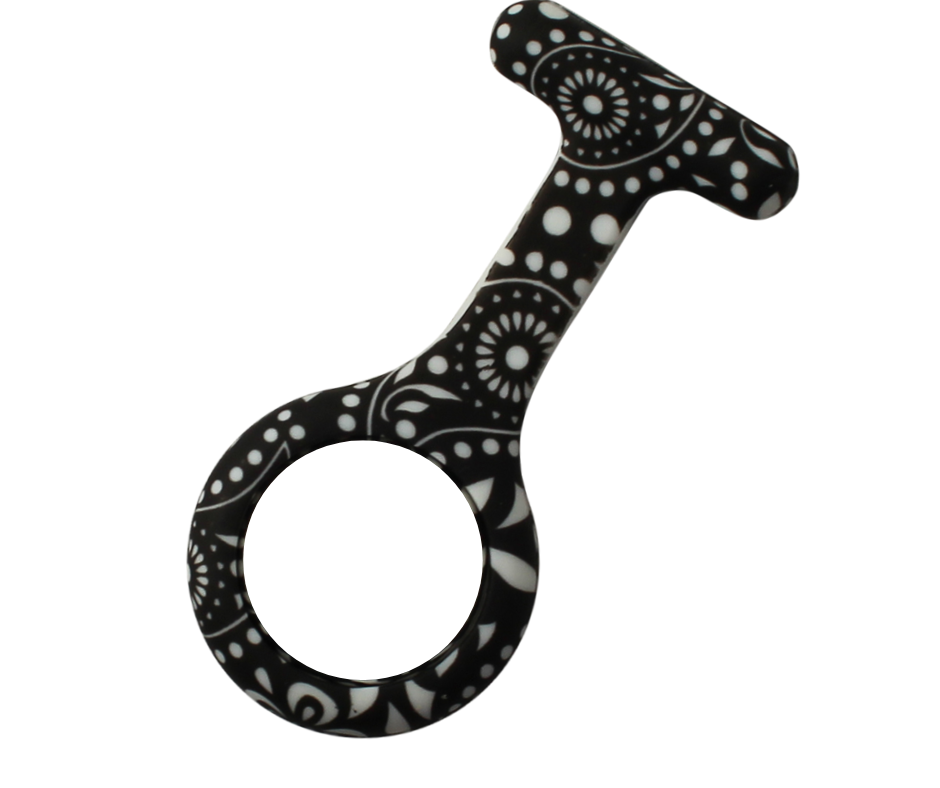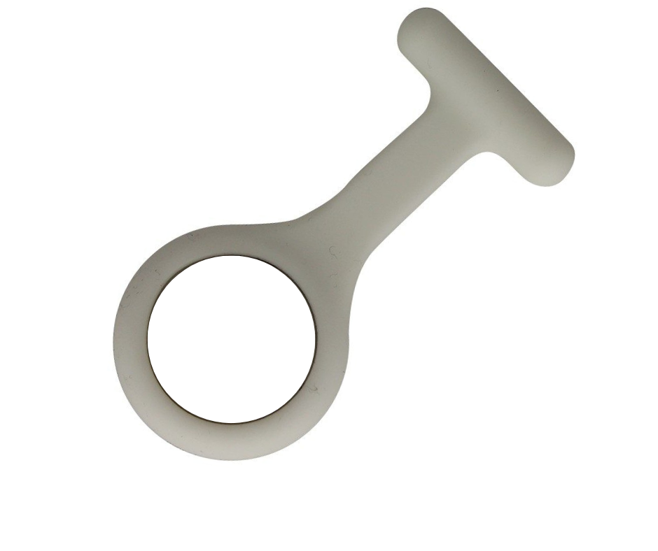 Et ur i blødt og lækkert design, der er 9 cm langt og 4 cm bredt. Uret sidder godt fast på uniformen, så du ikke rammer patienterne med sygeplejeuret, når du læner dig ind over dem.
