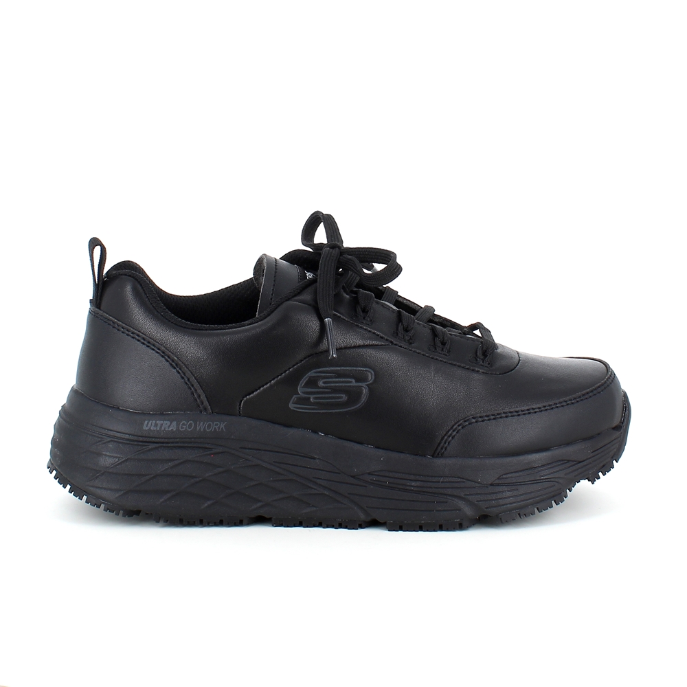 Skechers Work i sort skind med max cushioning såler