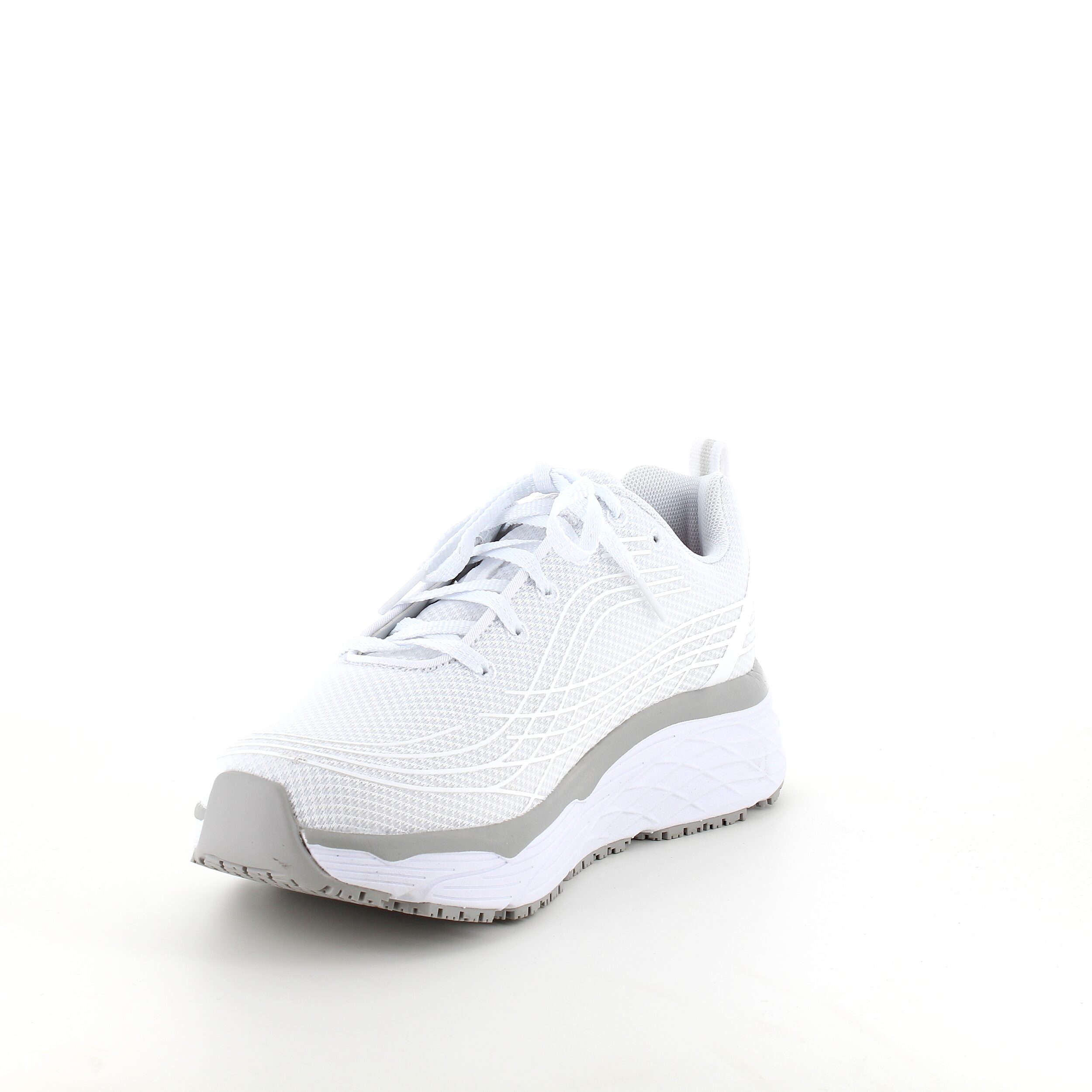 Overdelen er mesh som er åndbart og hele skoen er hvid, så den kan bruges i de fleste faggrupper.