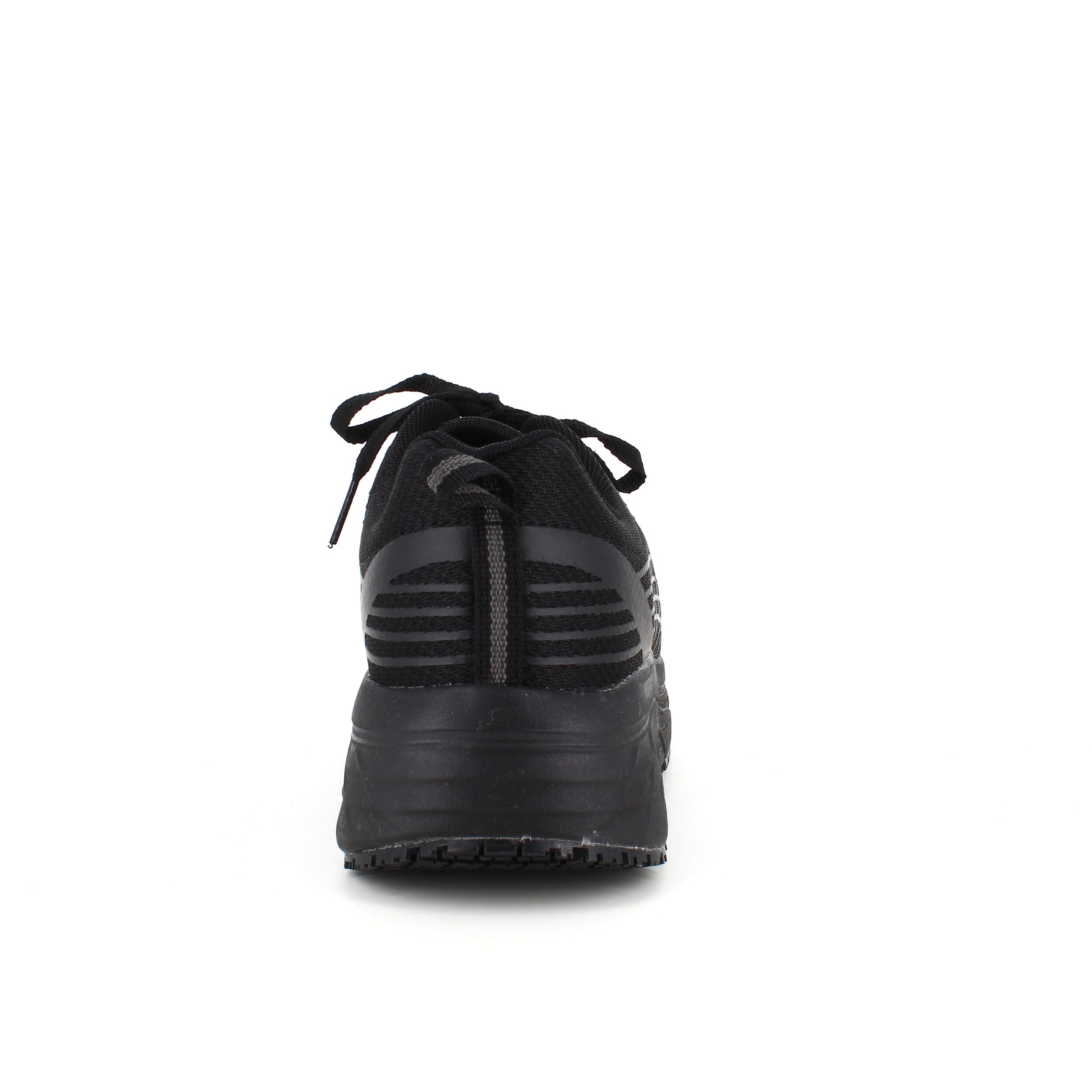 Overdelen er mesh som er åndbart og hele skoen er sort, så den kan bruges i de fleste faggrupper.