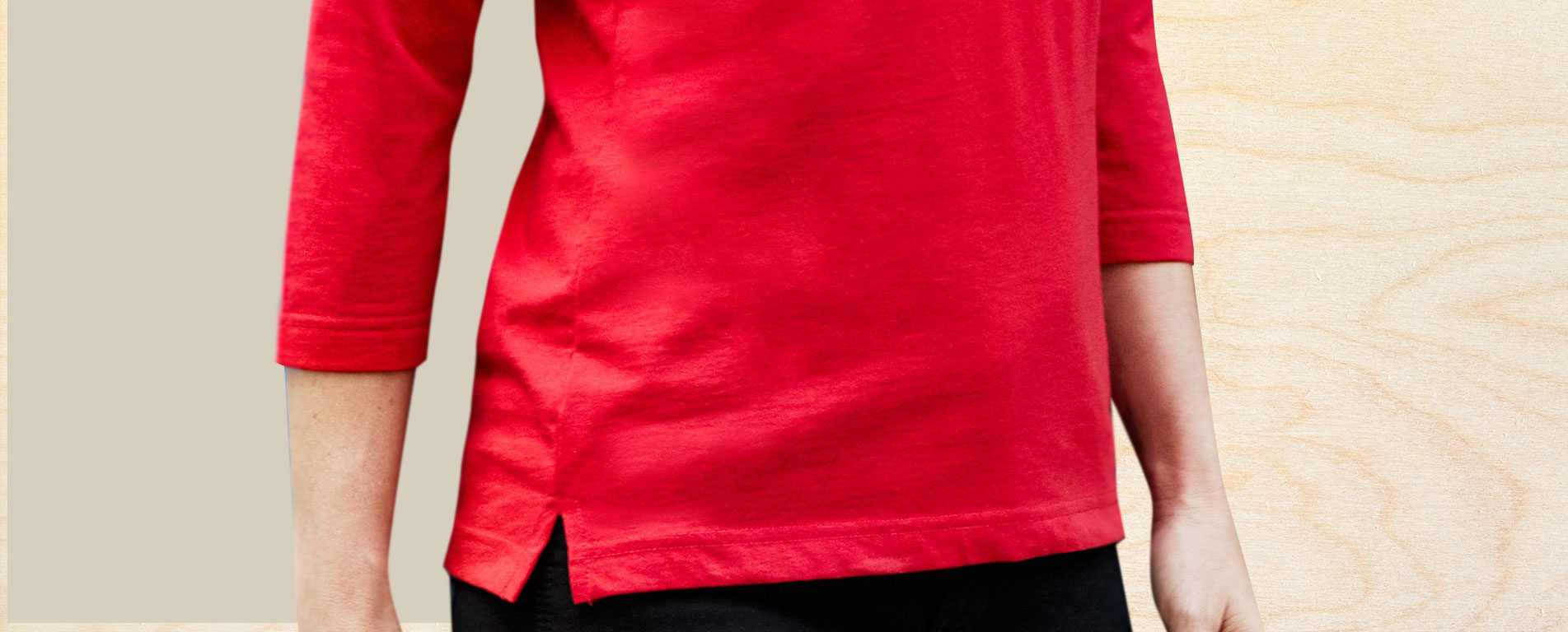 Slidstærk 3/4-ærmet dame t-shirt i rød